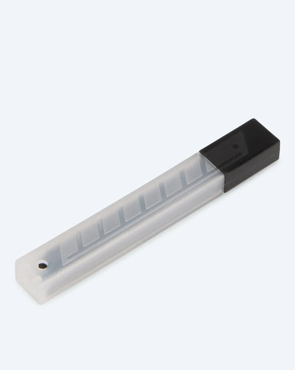 Nehmen Sie den Schutz des Universalmessers ab und entfernen Sie Schieber und Klinge zusammen. Entfernen Sie die alte Klinge und drücken Sie das Loch der neuen Klinge entsprechend dem Punkt des Schiebers. Schieben Sie die Klinge und den Schieber wieder an ihren Platz und drücken Sie den Schutz wieder auf.