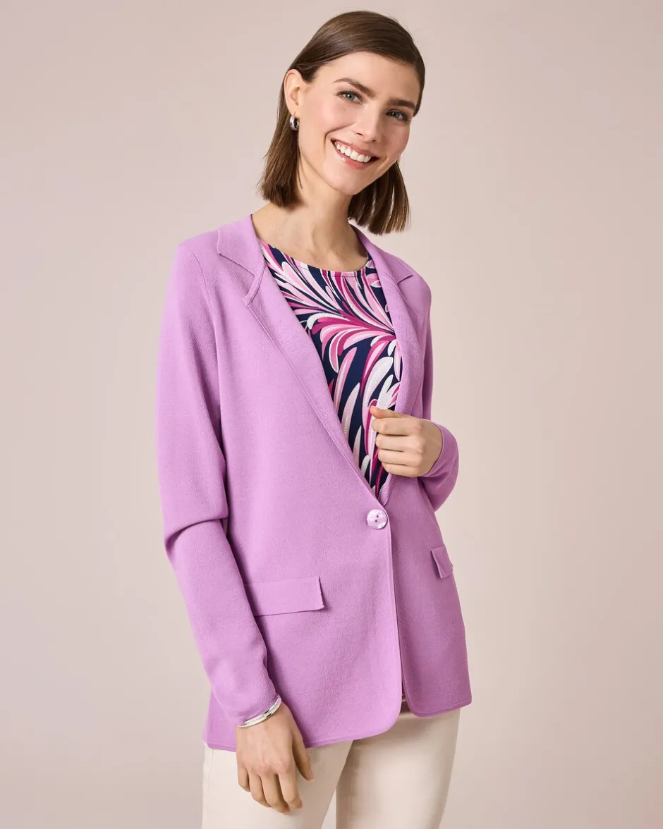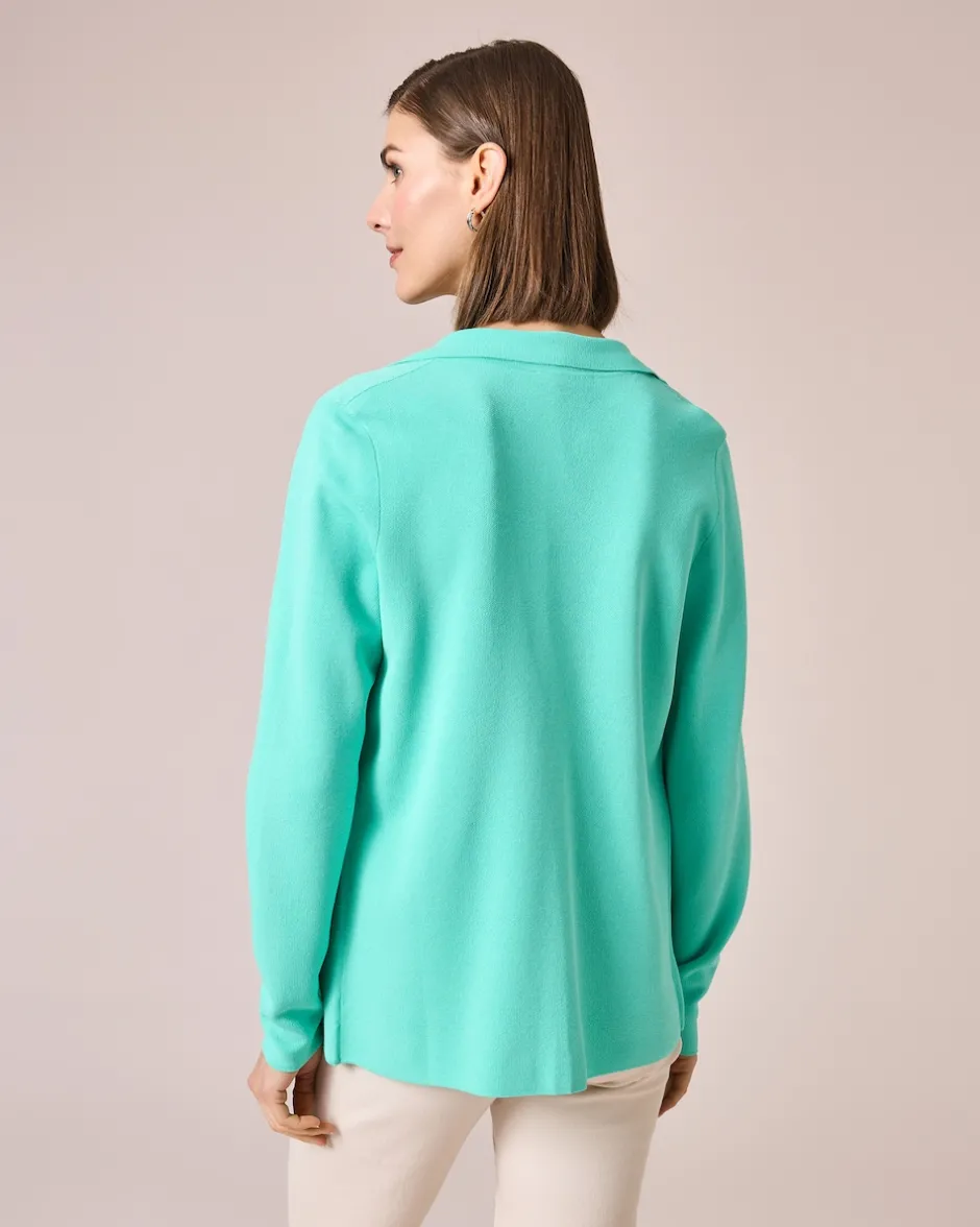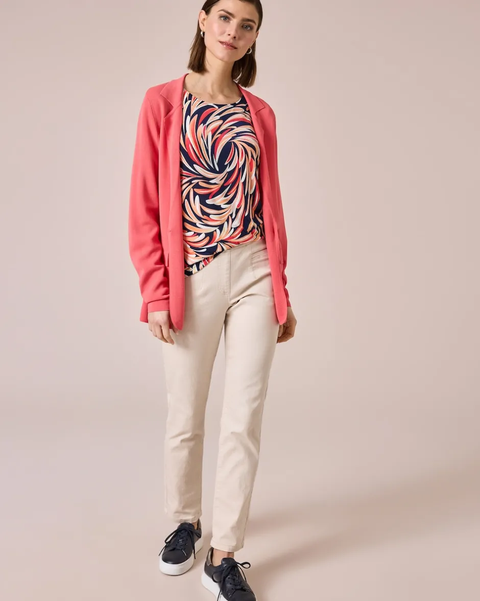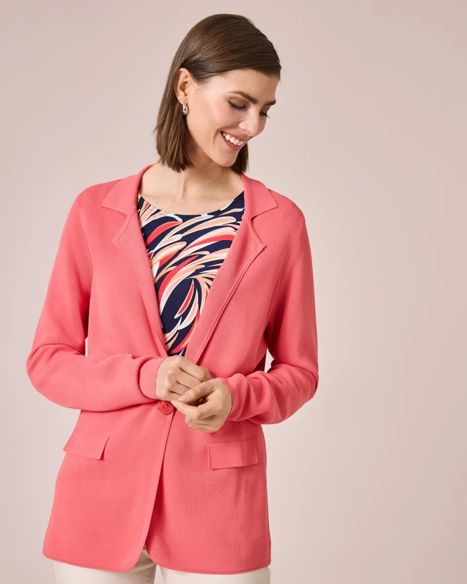 Lässiger Chic mit großem Kombitalent: Der Helena Vera Uni-Cardigan im Blazer-Style mit Reverskragen lässt sich sportiv, lässig und elegant kombinieren. Er ist aus einem soften Viskose-Strick gefertigt und kann offen oder mit einem Knopf geschlossen getragen werden. Die Seiten zieren zwei Fake-Taschen mit frechen Patten. Ob als Jackenersatz, über einem Maxikleid oder zu einer weißen Bluse – Das Trend-Piece macht einfach jeden Look komplett.