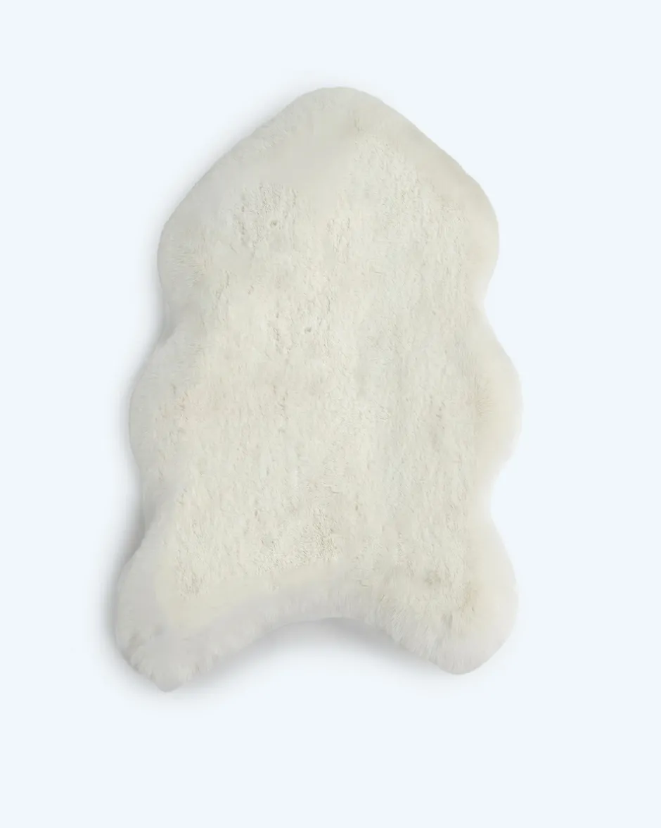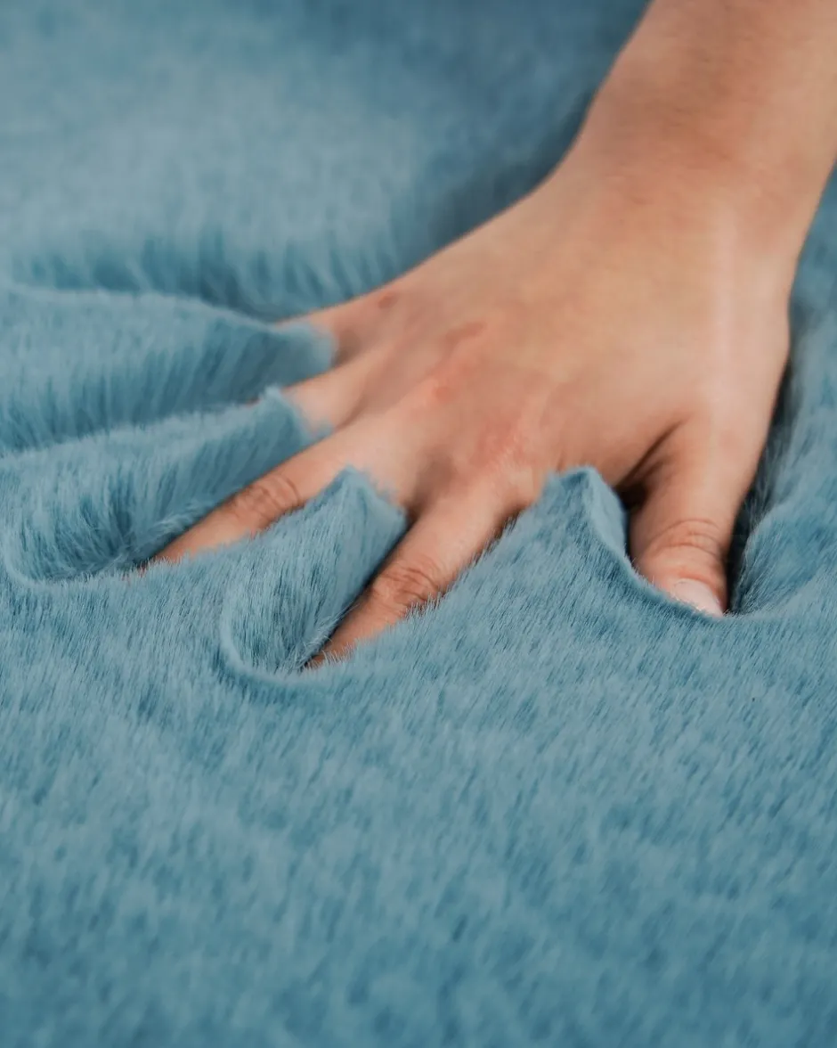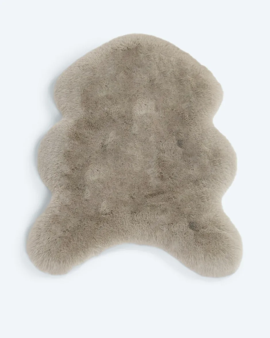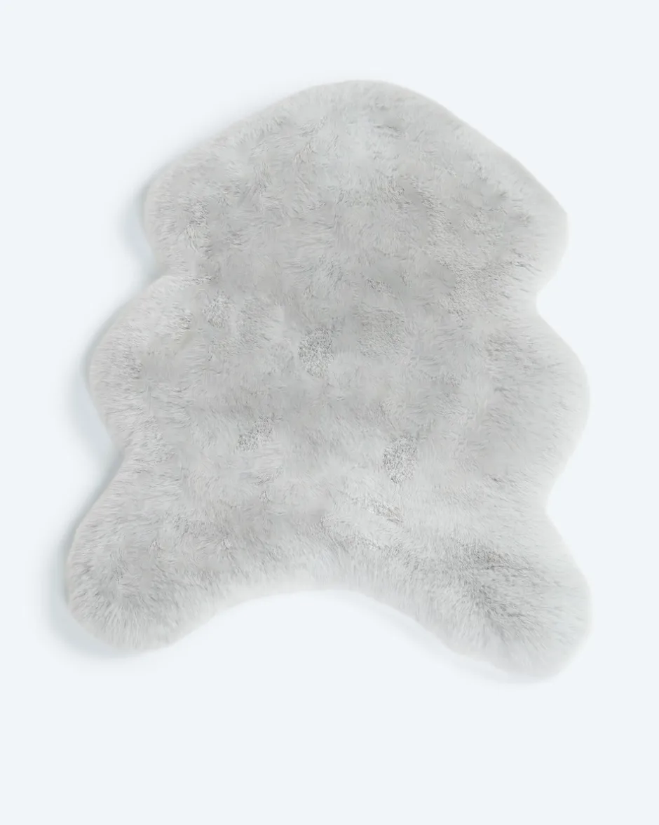 | Material: | 100 % Polyester Obermaterial: Kaninchenfell-Optik (Flächengewicht: 1700g/m²) mit Antirutsch-Dots | |