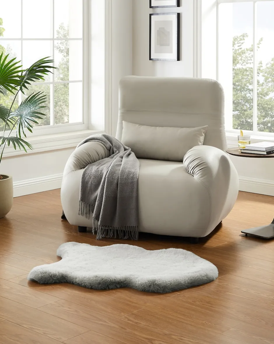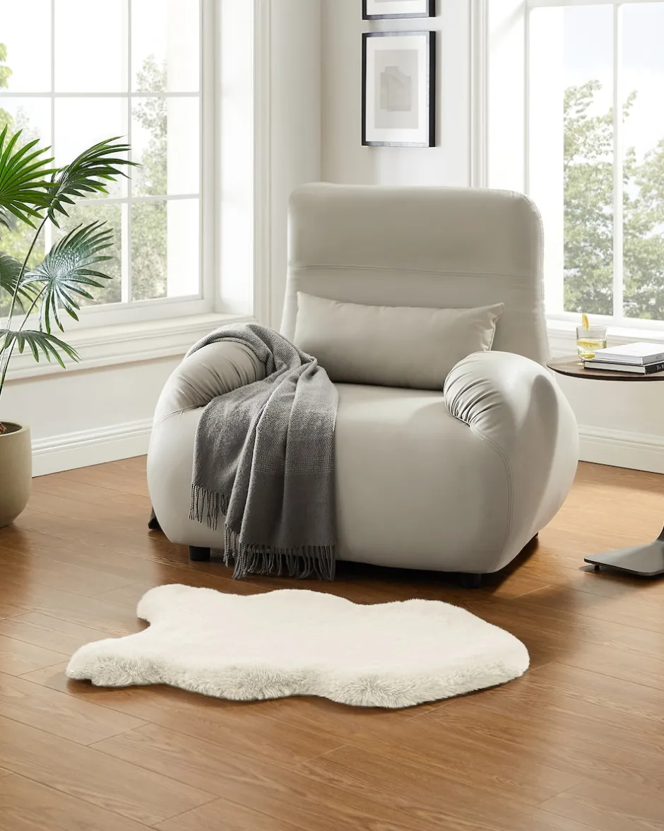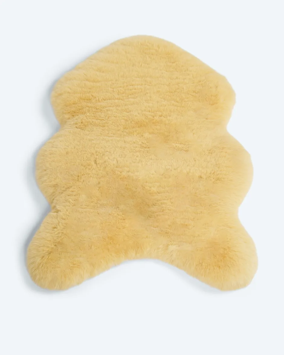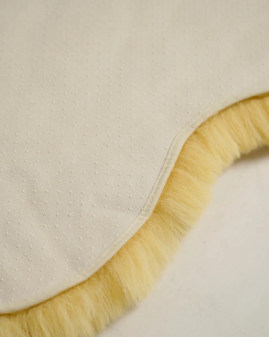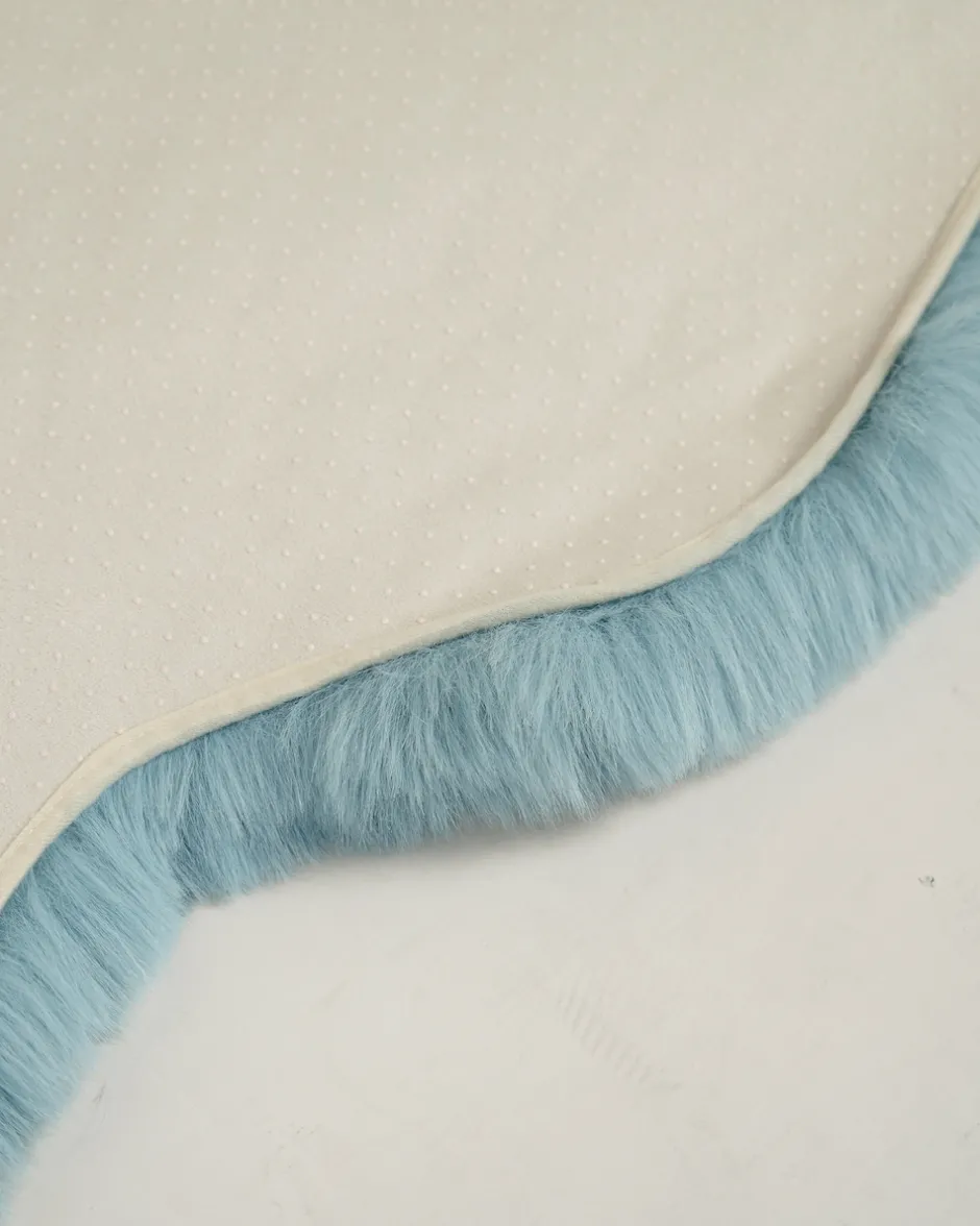 | Material: | 100 % Polyester Obermaterial: Kaninchenfell-Optik (Flächengewicht: 1700g/m²) mit Antirutsch-Dots | |