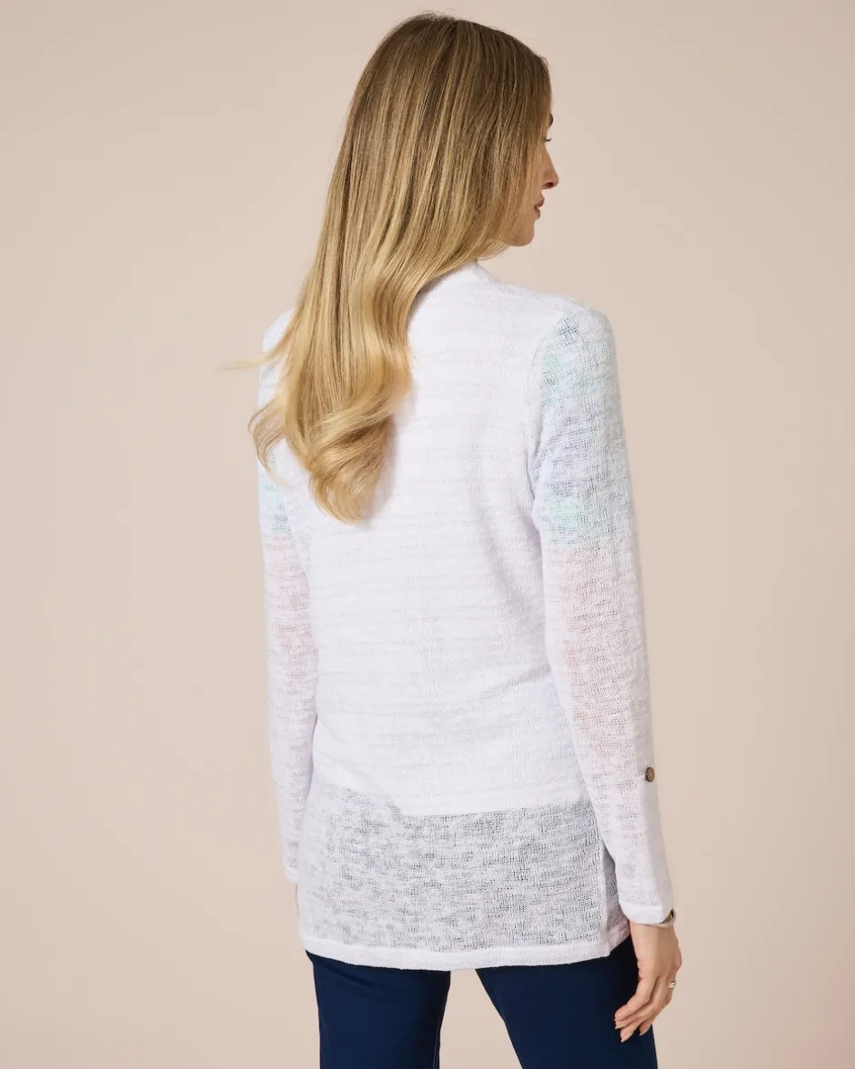 Dieser Longcardigan aus feinem Strick ist so chic, dass er auch zu stilvollen Office-Outfits getragen werden kann. Die elegante Qualität ist mit glitzerndem Metallgarn verarbeitet und in drei modischen Farben erhältlich. Hübsches Detail: Durch die Knopfriegel am Armabschluss können die Ärmel lang oder in ¾-Länge getragen werden. Freuen Sie sich auf einen vielseitigen Kombipartner für die wärmere Jahreshälfte.
