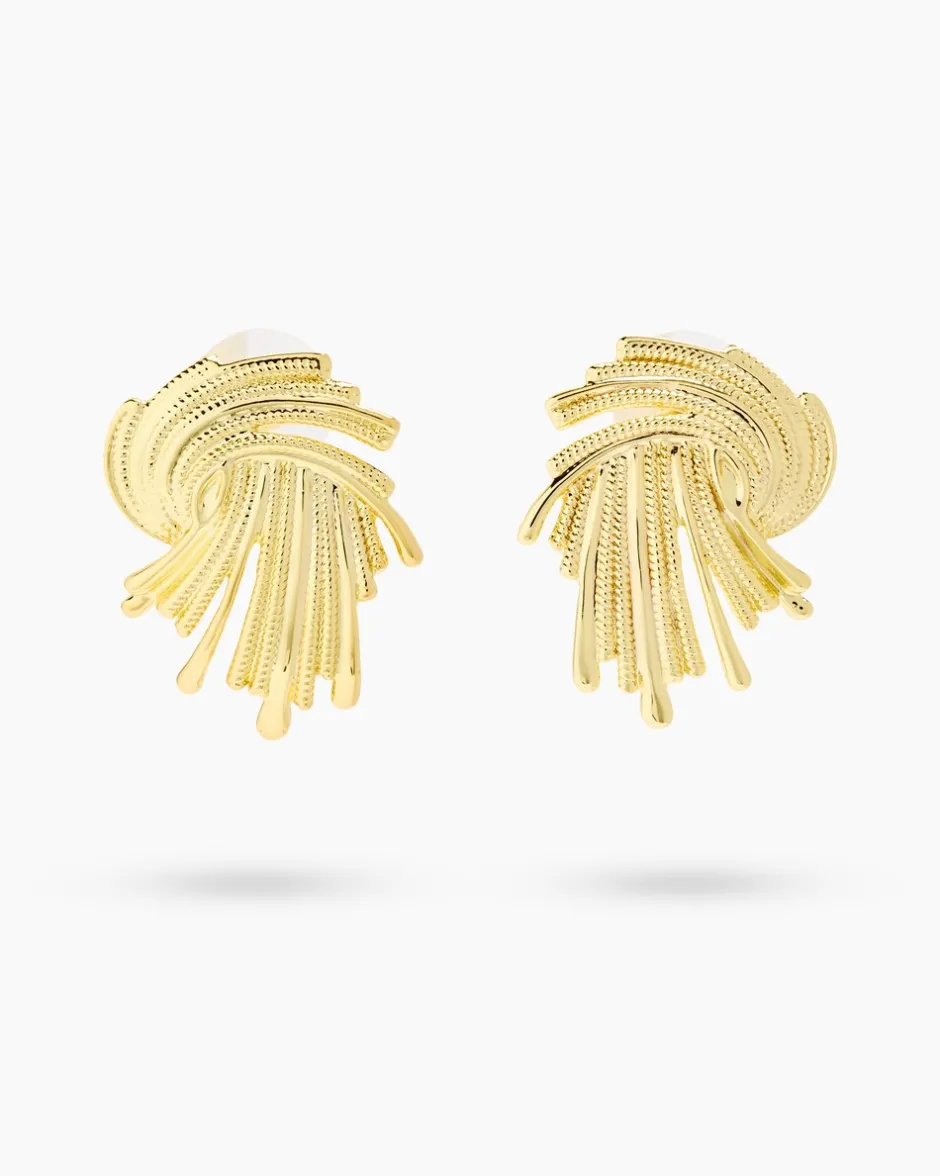 Mit diesen fantasievoll designten Ohrsteckern setzen Sie ein modisches Statement und verleihen Ihrem Look das gewisse Etwas. Die Ohrstecker sind aus hochglanzpoliertem und strukturiertem Messing geschmiedet und stehen Ihnen gelbvergoldet mit warmem Schimmer und palladiniert in kühl-eleganter Platinoptik zur Verfügung. Das Ohrringdesign wirkt wie kleine Sonnenstrahlen, die den Blick geschickt auf Ihr Gesicht lenken. Verschlossen wird der Schmuck mit einer Stecksicherung mit Silikoneinlage – perfekt auch für Allergikerinnen.