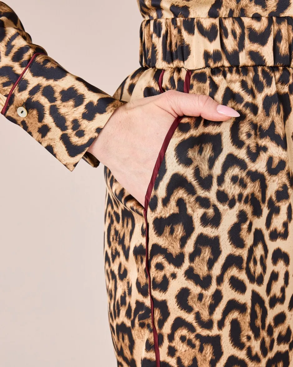 Feiner Satinglanz und ein stylisches Leomuster – mit dieser tollen Hose aus der neuen Judith Williams Kollektion zaubern Sie im Handumdrehen unwiderstehliche Looks. Ein hübscher Extra-Hingucker ist die Paspel in Bordeauxrot entlang der Seitennaht. Ausgestattet mit einem breiten Elastikbund, so sitzt die Hose perfekt auf jeder Hüfte. Kombinieren Sie nach Lust und Laune mit vielen Teilen aus Ihrer Garderobe. Oder Sie bestellen die passende Bluse im selben Design direkt dazu (474858).