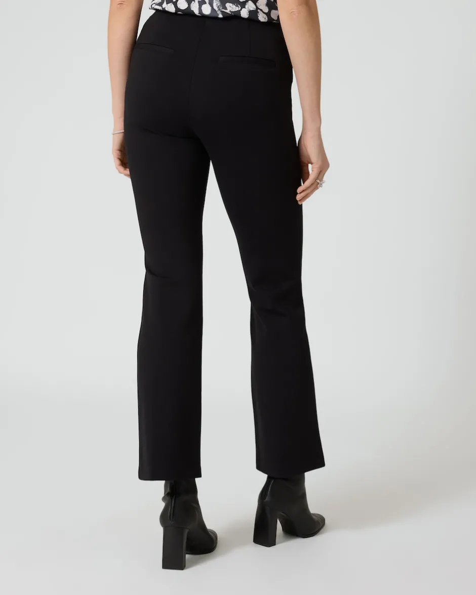 Suchen Sie eine Hose, die sowohl Stil als auch Bequemlichkeit bietet? Unsere modische Schlupfhose ist genau das, was Sie brauchen. Der bequeme Bund mit Gummiband und das leicht ausgestellte Bein mit Mittelnaht sorgen für eine perfekte Passform und unterstreichen Ihre Figur. Das Detail der Fake-Taschen hinten und das Metall-Logo am linken Hosenbund verleihen ein zusätzliches modisches Flair. Und das Beste? Dank des hochwertigen Viskose-Stretch-Materials genießen Sie den ganzen Tag über einen unvergleichlichen Tragekomfort. Ob im Büro oder beim entspannten Stadtbummel, kombinieren Sie sie mit einer schicken Bluse oder einem lässigen T-Shirt. Mit unserer Schlupfhose sind Sie stets stilvoll und komfortabel gekleidet.