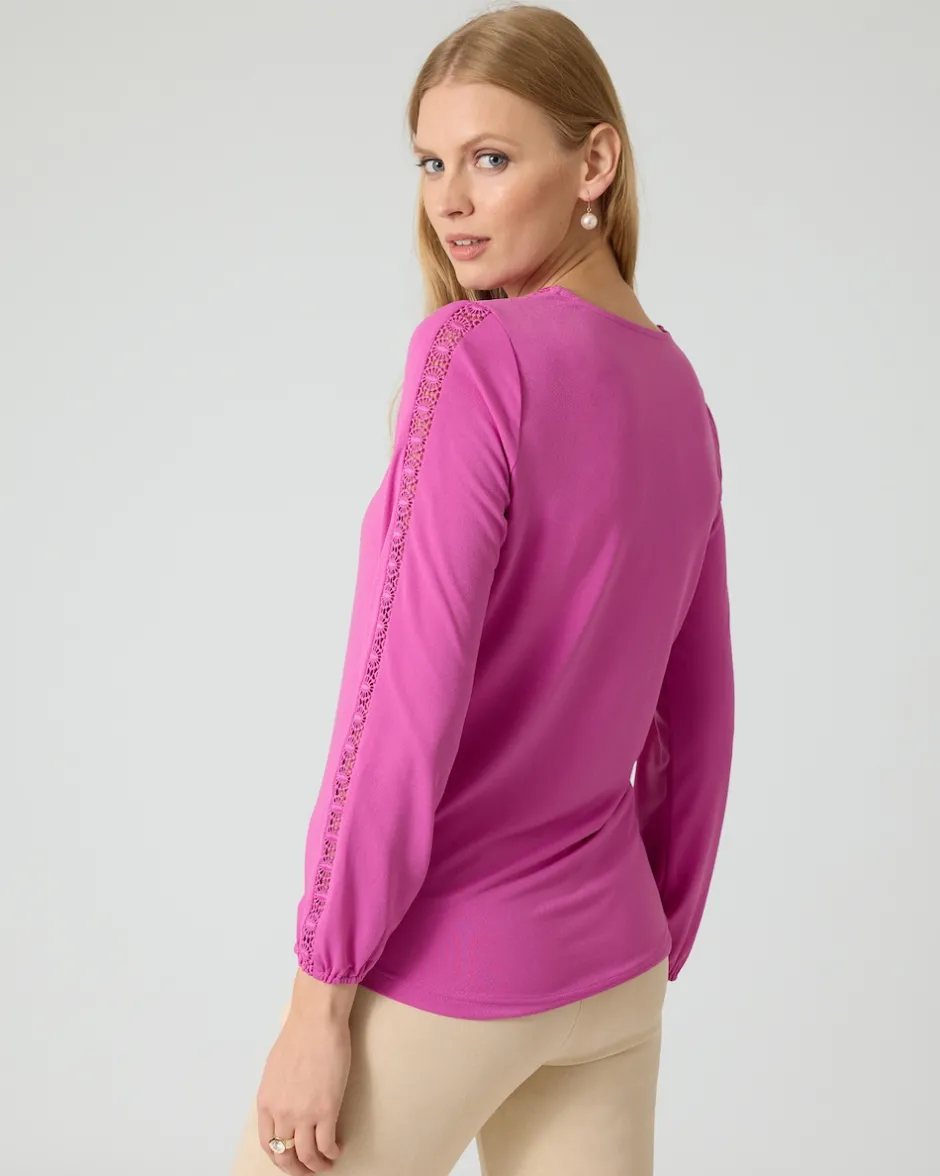 So stylish kann ein Uni-Shirt sein: Durch den hübschen Spitzenbesatz an Ausschnitt und Ärmeln erhält dieses Shirt einen betont femininen und modischen Look. Das Shirt lässt sich toll kombinieren und überzeugt zu entspannten Jeans ebenso wie zu eleganten Hosen und Röcken. Für perfekten Tragekomfort wurde die feine Qualität mit einem Stretch-Anteil versehen. Ein Allrounder aus der Pfeffinger Kollektion.