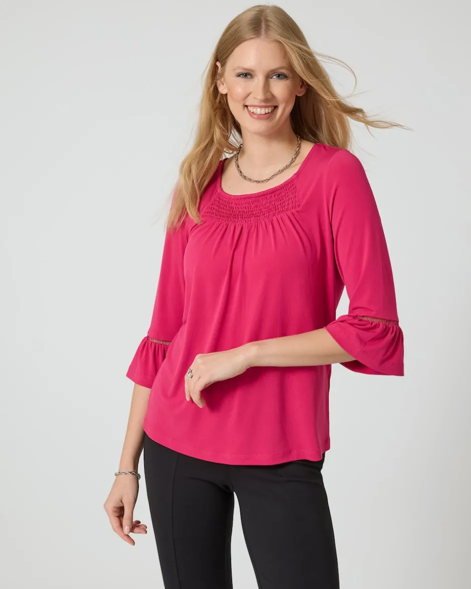 Shirts, wie wir sie lieben. Dieser reizende Hingucker-Style aus der Pfeffinger Kollektion lässt sich toll kombinieren – und passt eigentlich immer. Verschiedene feminine Details wie die Smok-Partie am Ausschnitt und die hübschen Volantärmel verleihen dem Shirt seinen individuellen und besonderen Look. Es ist in drei angesagten Farben erhältlich und passt so bestimmt auch in Ihre Garderobe.
