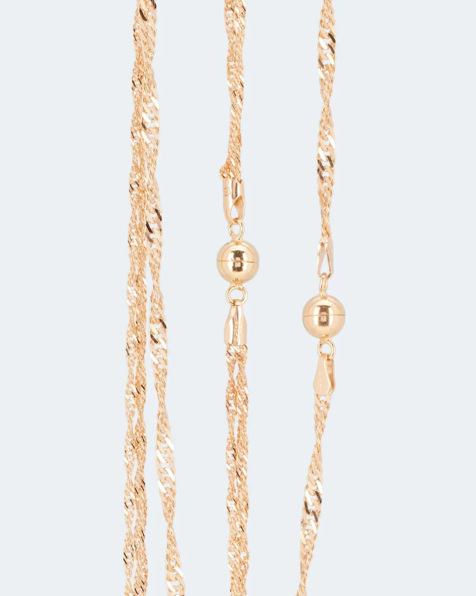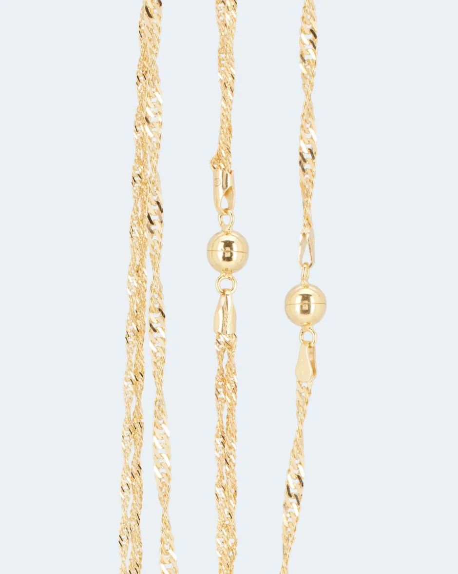 | Maße: | 2er Set aus 2 x 45 cm oder 2 x 50 cm Länge 1 x 45 cm oder 50 cm 1-reihig mit 2,7 mm 1 x 45 cm oder 50 cm 3-reihig mit 1,7 mm pro Strang als Wasserfall 4-reihig oder verlängert oder einzeln tragbar. Verschluss: Magnetschließe | |