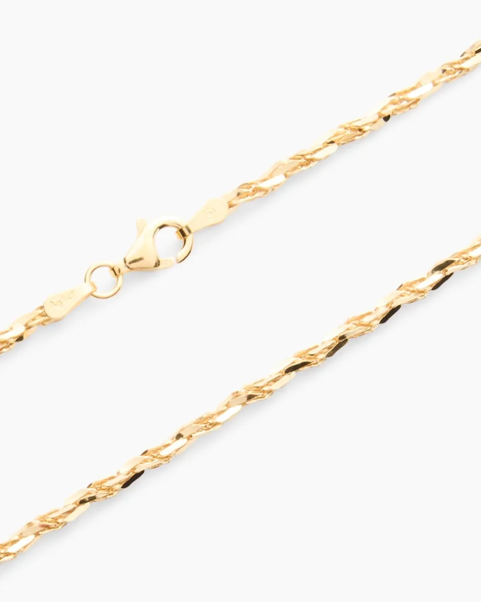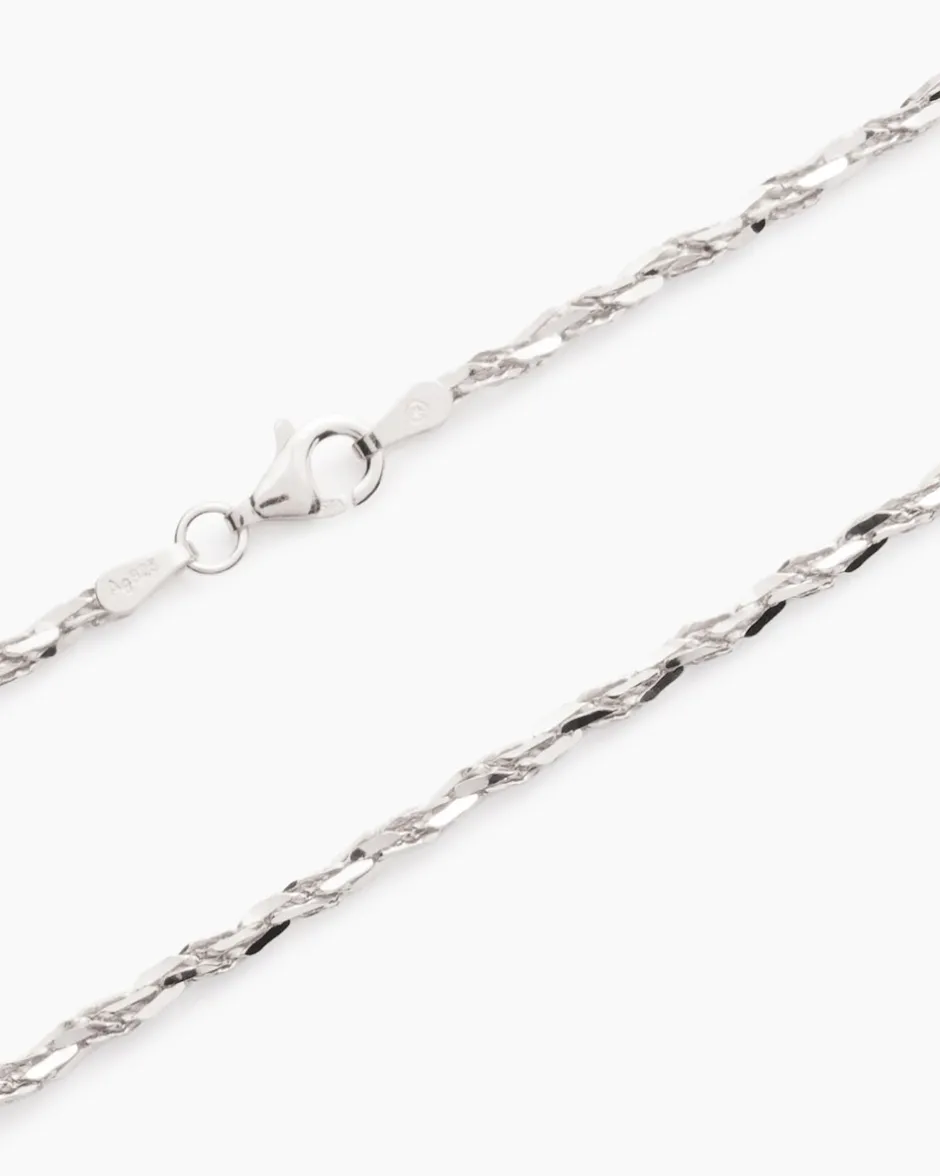 Die Tornadokette besteht aus 2 Strängen, die zusammengedreht sind. Sie ist aus Sterlingsilber 925 gearbeitet, das Sie in der gelbvergoldeten oder silberweißen Variante bestellen können. Beide sind auf Hochglanz poliert. Ob solo oder mit einem aparten Anhänger, die Tornadokette von Aleksander Sternen La Barca ist immer ein Eyecatcher. Sie ist in zwei verschiedenen Längen erhältlich und wird mit einem Karabiner verschlossen. Sie ist perfekt auf nackter Haut, versprüht aber auch ihren Charme über einem Pullover oder einem Kleid getragen.