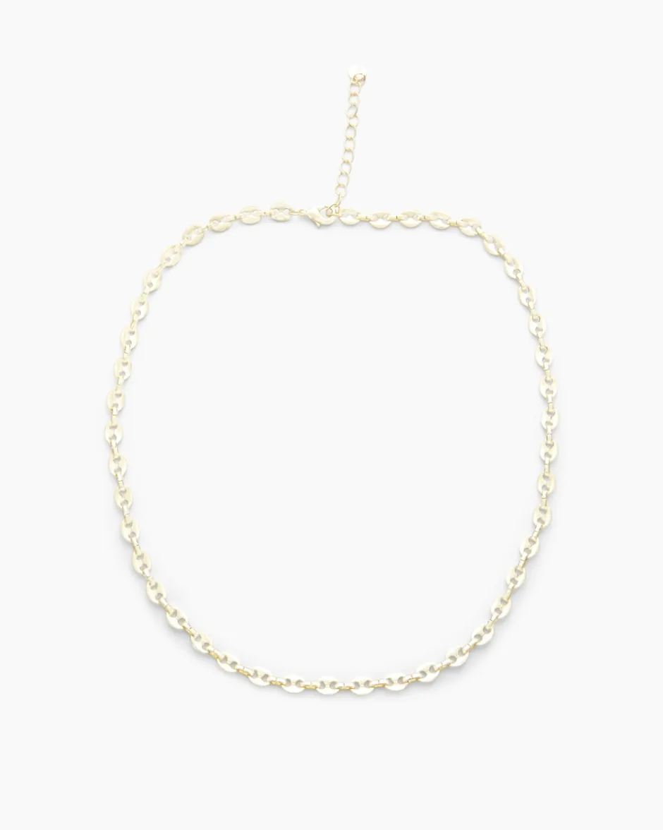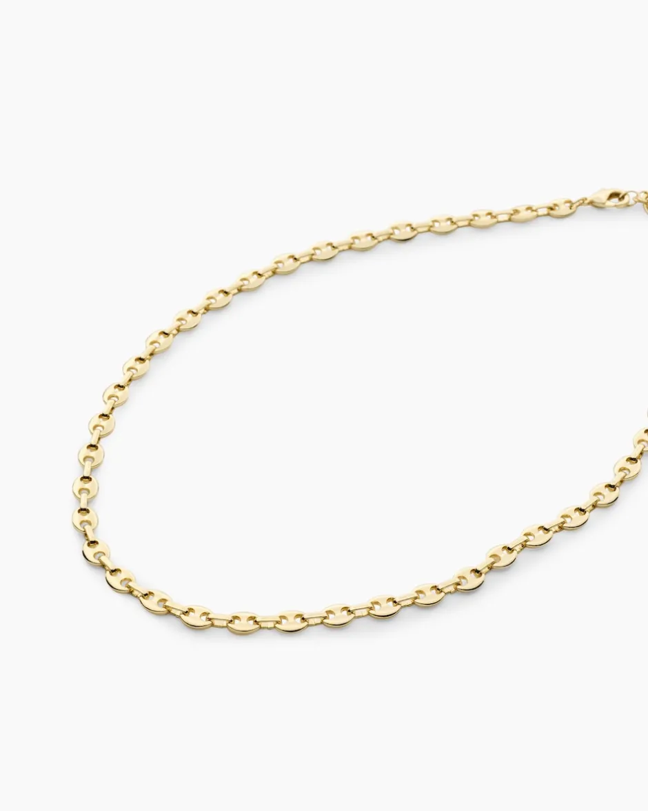Mit diesem hübschen Collier wird Ihr modischer Look komplett. Die unkomplizierte Halskette passt einfach immer und präsentiert sich im verspielten Kaffeebohnen-Design. Je nach Vorliebe und Styling kann eine gelbvergoldete oder silberfarbene Variante bestellt werden. Das Collier hat eine klassische Länge von 45 Zentimetern sowie eine kleine Verlängerungskette mit dekorativem Logo-Tag.