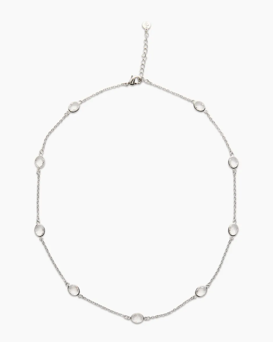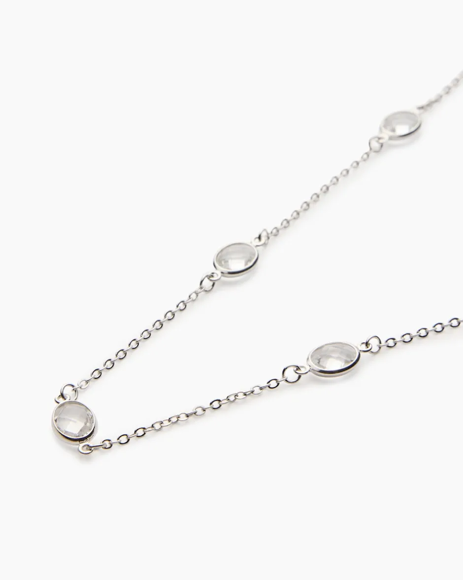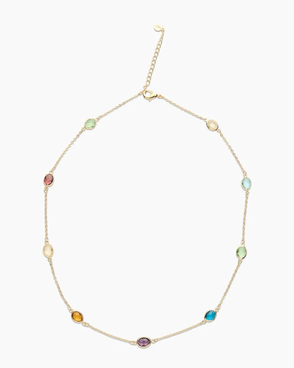Dieses verspielte Collier von Jana Ina Fashion ist ein bezaubernder Blickfang für jeden Tag. Je nach Geschmack können Sie eine gelbvergoldete Ankerkette mit bunten Glassteinen bestellen oder eine palladinierte Variante mit weißen. Alle Steine haben eine ovale Form mit Facettenschliff und sorgen so für hübsche Glitzereffekte auf Ihrem Dekolleté. Die vielseitige Kette ist 45 Zentimeter lang und wird mit einem Karabiner geschlossen.