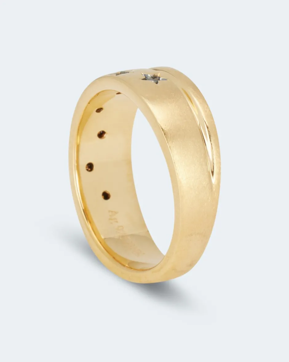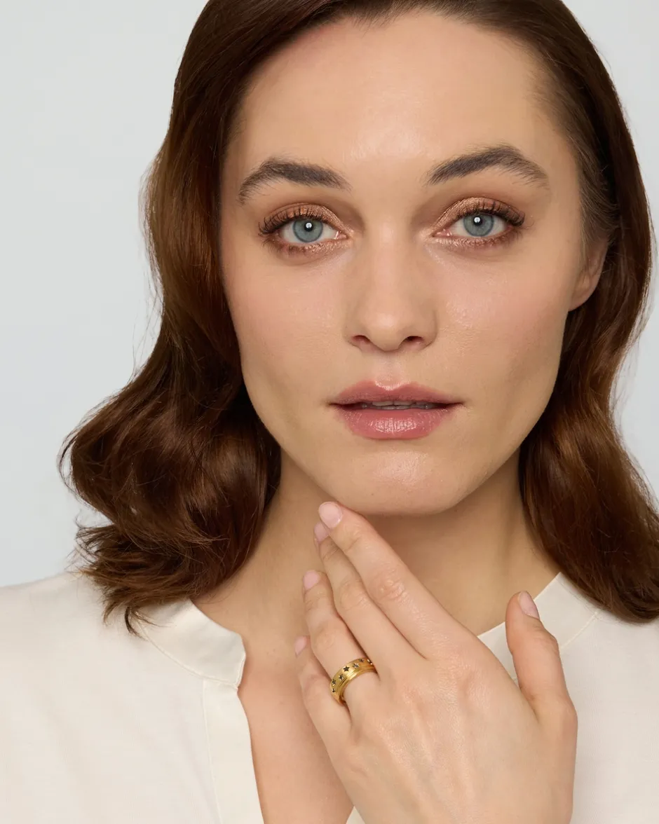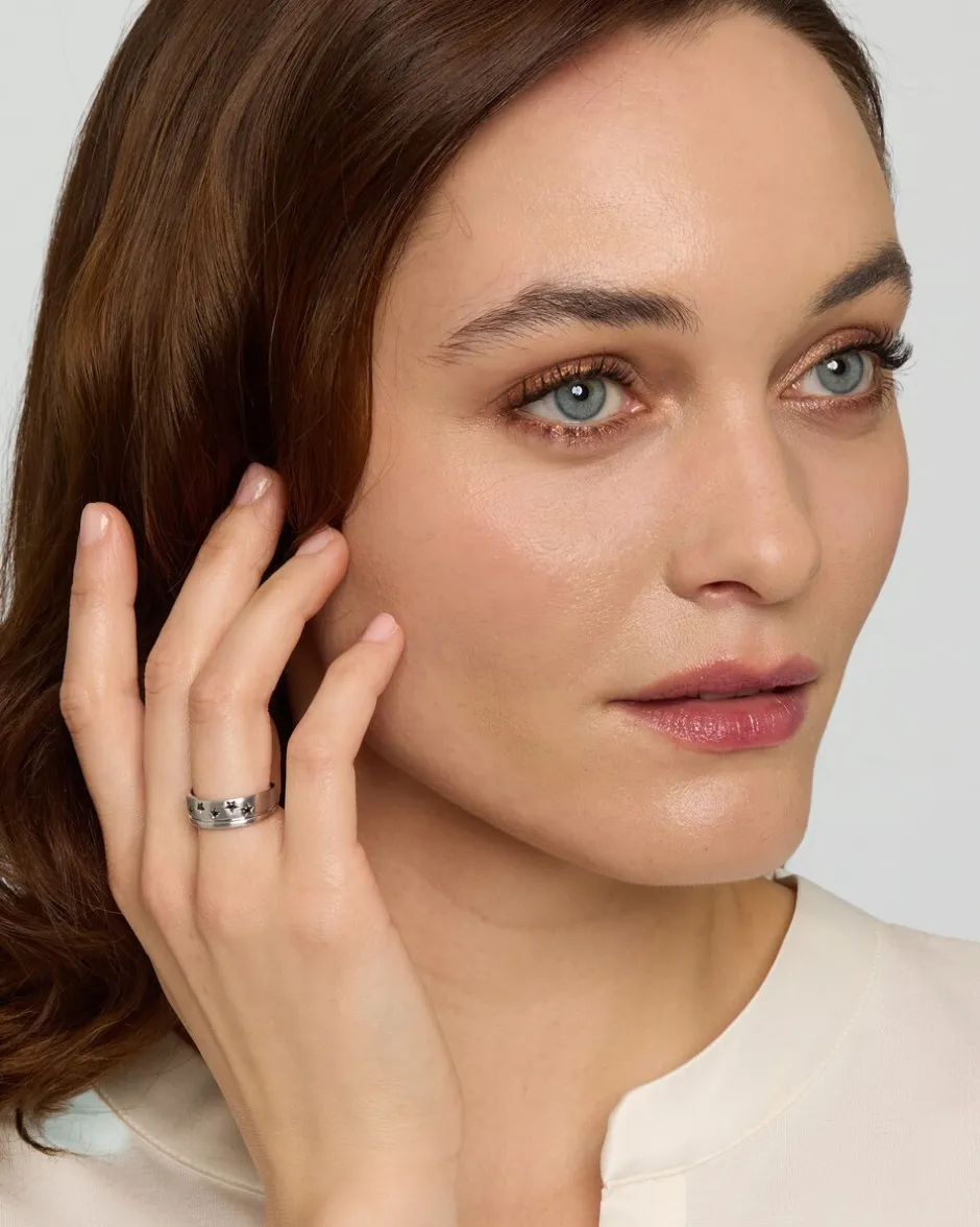 Sieben funkelnde Brillantsterne leuchten Ihnen auf diesem Ring entgegen. Der Ring aus Silber 925 ist in zwei Varianten erhältlich. Gelbgoldplattiert oder rhodiniert in Silberweiß. Die schwarzen Brillanten sind im Brillantschliff veredelt und von guter Schliffqualität. Die Brillanten sind eingerieben und gleichmäßig über die Ringschiene verteilt. Eine Optik, die jeden Betrachter sofort in den Bann zieht und jedes Outfit edel abrundet. Alleine oder zusammen mit Ihren anderen Ringen getragen – dieser Ring wird Ihnen lange Freude bereiten.