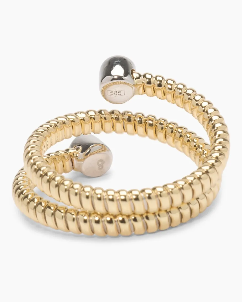 Dieser Marvin Kulik Ring wird Ihre Schmuckschatulle durch sein außergewöhnliches Flex-Design bereichern. Damit schmiegt er sich passgenau an Ihren Finger. Die bewegliche Ringschiene ist aus hochglanzpoliertem 585er Gelbgold gefertigt. An den Enden sitzt je ein runder Brillant in einer Zargenfassung aus rhodiniertem 585er Weißgold. So entsteht eine raffinierte Bicolor-Optik, die die Präsenz der Brillanten noch intensiver macht. Die Edelsteine mit ca. 0,20 ct verfügen über die die Reinheit SI1, sind gut geschliffen und made in Germany. Ob für einen besonderen Anlass oder als täglicher Begleiter – dieser Marvin Kulik Ring ist besonders und einfach perfekt.