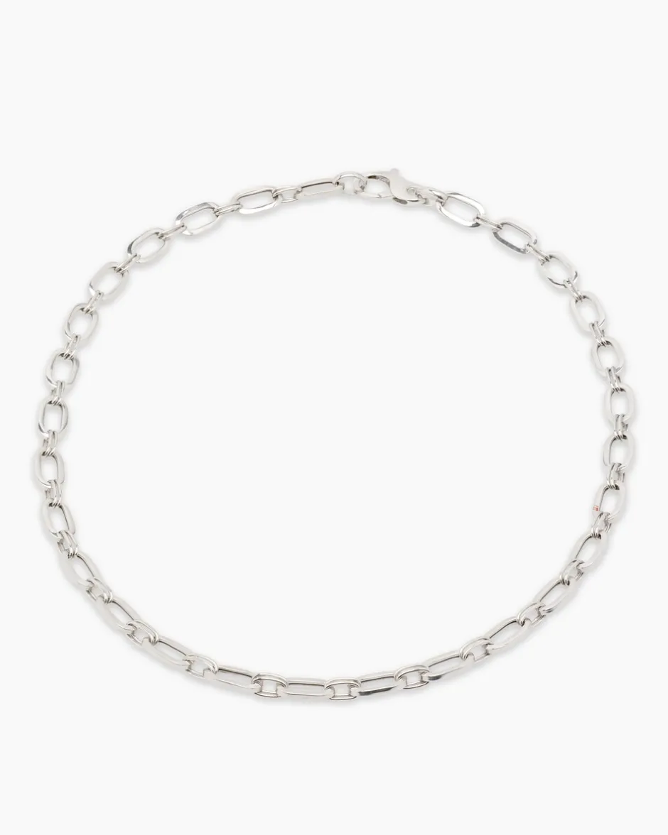 Elegant und modisch zugleich ist diese Figaro-Ankerkette mit schmalen Gliedern. Das hochwertige Collier besteht aus massivem Sterlingsilber (925) und wurde für die beliebte Weißgold-Optik mit einem rhodinierten Finish versehen. Die Kette ist circa 51 Zentimeter lang und wird mit einem klassischen Karabiner verschlossen. Durch sein klares, schnörkelloses Design ist dieser Halsschmuck optimal mit weiterem Schmuck kombinierbar.