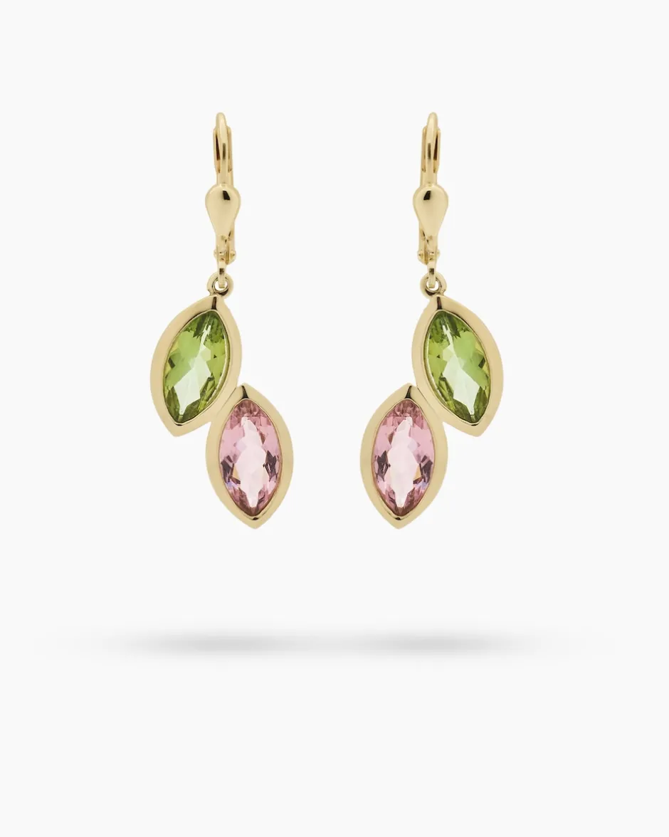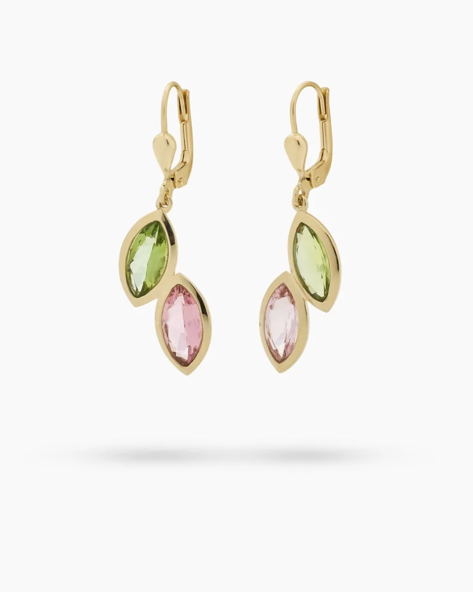 Luftig, leicht und einfach entzückend – die aparten Ohrhänger von Sogni d’oro Facettenreich sind die idealen Schmuck-Accessoires für jeden Tag. Mit ihrem mädchenhaften Charme rahmen sie Ihr Gesicht stilvoll ein. Der Ohrschmuck aus 375er Gold im Hochglanzfinish ist hängend designt. Je zwei Turmaline in Navetteform verstömen mit ihren Facetten ein herrliches Funkeln. Die Edelsteinschönheiten in Grün und Pink harmonieren wunderschön mit Ihrer Gesichtsfarbe. Gönnen Sie sich diese besondere Kreation, Sie werden die Schmuckstücke bestimmt oft tragen.
