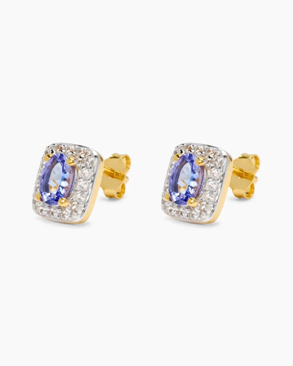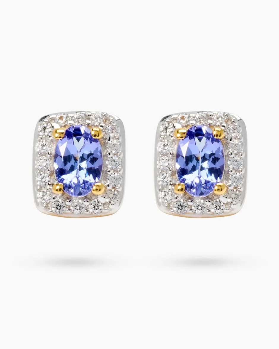 Tauchen Sie ein in die Magie unserer Ohrstecker, besetzt mit edlem Tansanit in AAA Farbqualität. Gefertigt aus gelbvergoldetem 925er Sterlingsilber und aufwendig hochglanzpoliert, überzeugen sie mit ihrem klassischen, eleganten Design. Jeder Ohrstecker ist besetzt mit einem faszinierenden, oval facettierten Tansanit von 6 x 4 mm Größe in tiefem Violett, umrahmt von 16 funkelnden, runden Zirkonen. Alle Steine sind in Krappenfassungen gefasst und haben zusammen ca. 1,04 ct Edelsteingewicht. Die Ohrstecker sind ideal für festliche Anlässe oder um Ihren Alltag stilvoll zu bereichern.
