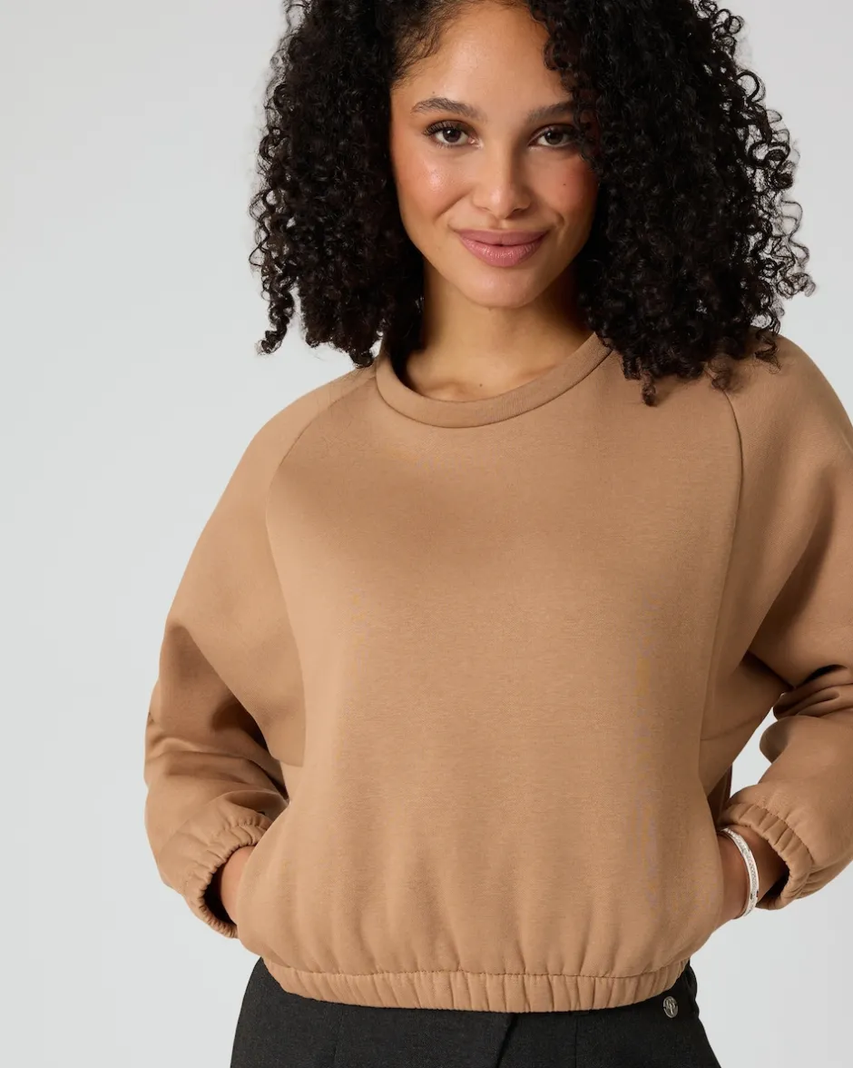 Dieses Sweatshirt im coolen Oversized-Look ist perfekt für alle Ladies, die gern Komfort und Style miteinander kombinieren. Lässig und äußerst praktisch ist der Gummizug an Ärmelenden und Saum. Perfekt ergänzt durch seitliche Känguruh-Taschen – ideal zum Wärmen der Hände. Und zum entspannten Herumstehen. Das Unidesign in der Trendfarbe Nougat lädt zu vielen schnellen Kombis ein. Tragen Sie das Sweatshirt zum Beispiel zu Ihren Lieblings-Jeans, Leggings oder Jogpants.