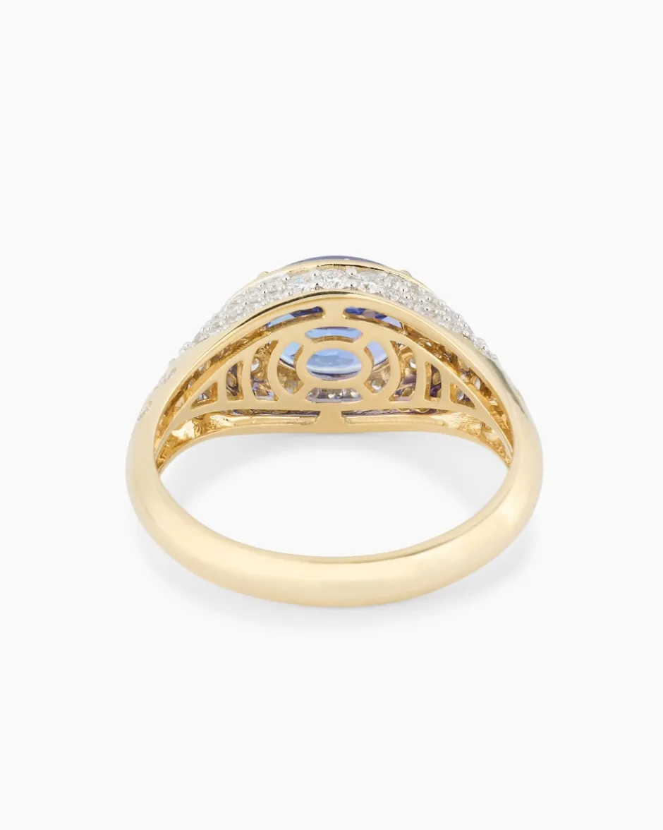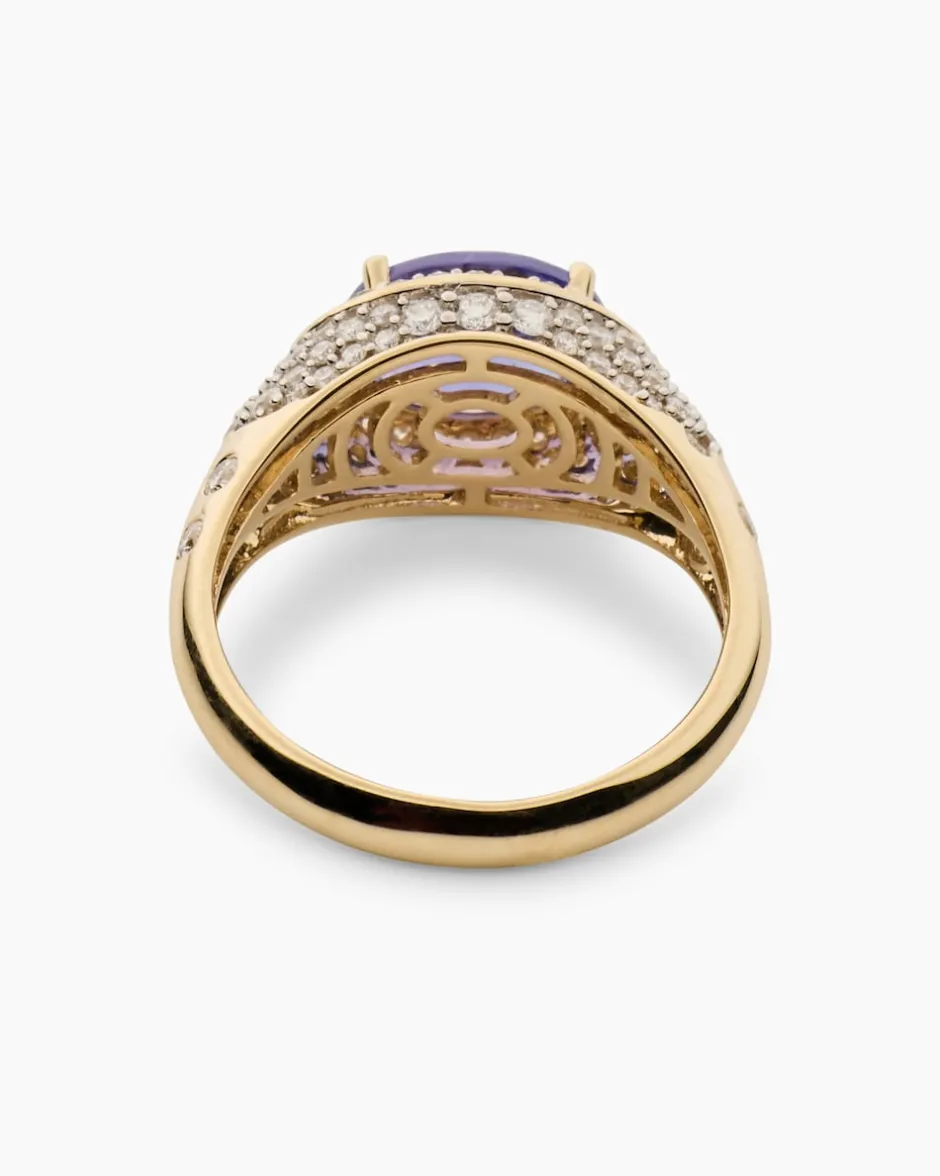 Beeindruckend und umwerfend schön – der Tansanit in AAAA-Qualität ist ein atemberaubender Blickfang. Er sitzt im Zentrum von 96 weißen Brillanten, die sein tiefes Blau zusätzlich unterstreichen. Der warme Schimmer der Ringschiene aus 585er Gelbgold ist ein wunderbarer Kontrast zu den kühlen Farben der Edelsteine im Ringkopf. Trotzdem sind die goldenen Fassungen zum Teil rhodiniert, denn so kommt das funkelnde Brillantweiß noch besser zur Geltung. Mit der harmonischen Komposition aus Edelsteinen und Gold sind Ihnen bewundernde Blicke sicher. Bereichern Sie Ihre Schmuck-Kollektion um dieses wertvolle Designerstück.