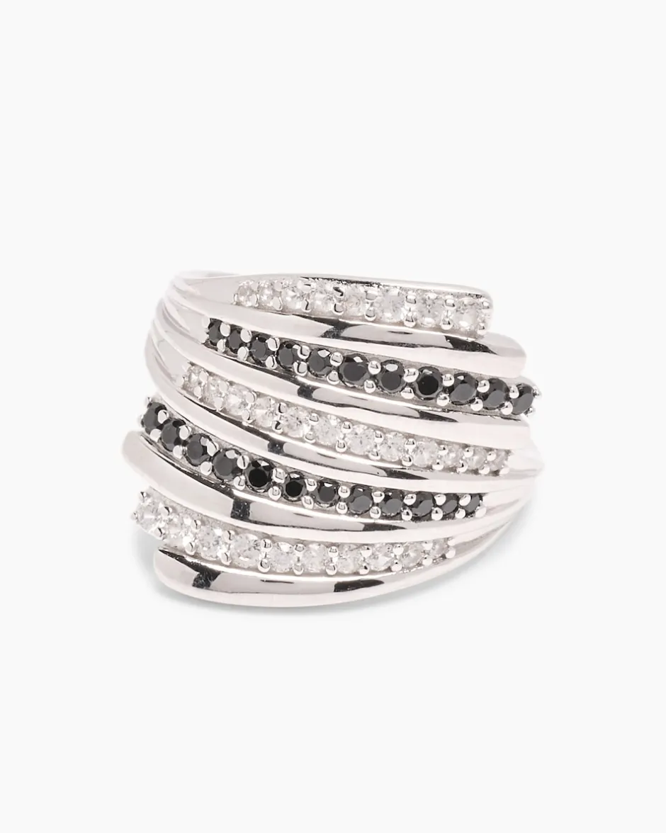 Hell schimmerndes 925er Sterlingsilber ist die Basis für den charismatischen Ring von Sogni d’oro Silberzeit. Die silberne Ringschiene ist im Stil eines Bandrings gearbeitet und mündet in den markanten Ringkopf mit 30 weiß funkelnden Zirkonen und 23 geheimnisvoll schwarz schimmernden Spinellen. Der klassische Kontrast der schwarzen und weißen Steine, gefasst in silberne Krappen, ist ein beeindruckender Eyecatcher. Tragen Sie den Ring zu eleganten Outfits oder geben Sie Ihren Casual-Looks ein Plus an Glamour – in jedem Fall sind Ihnen aufmerksame Blicke auf Ihre Hand gewiss.