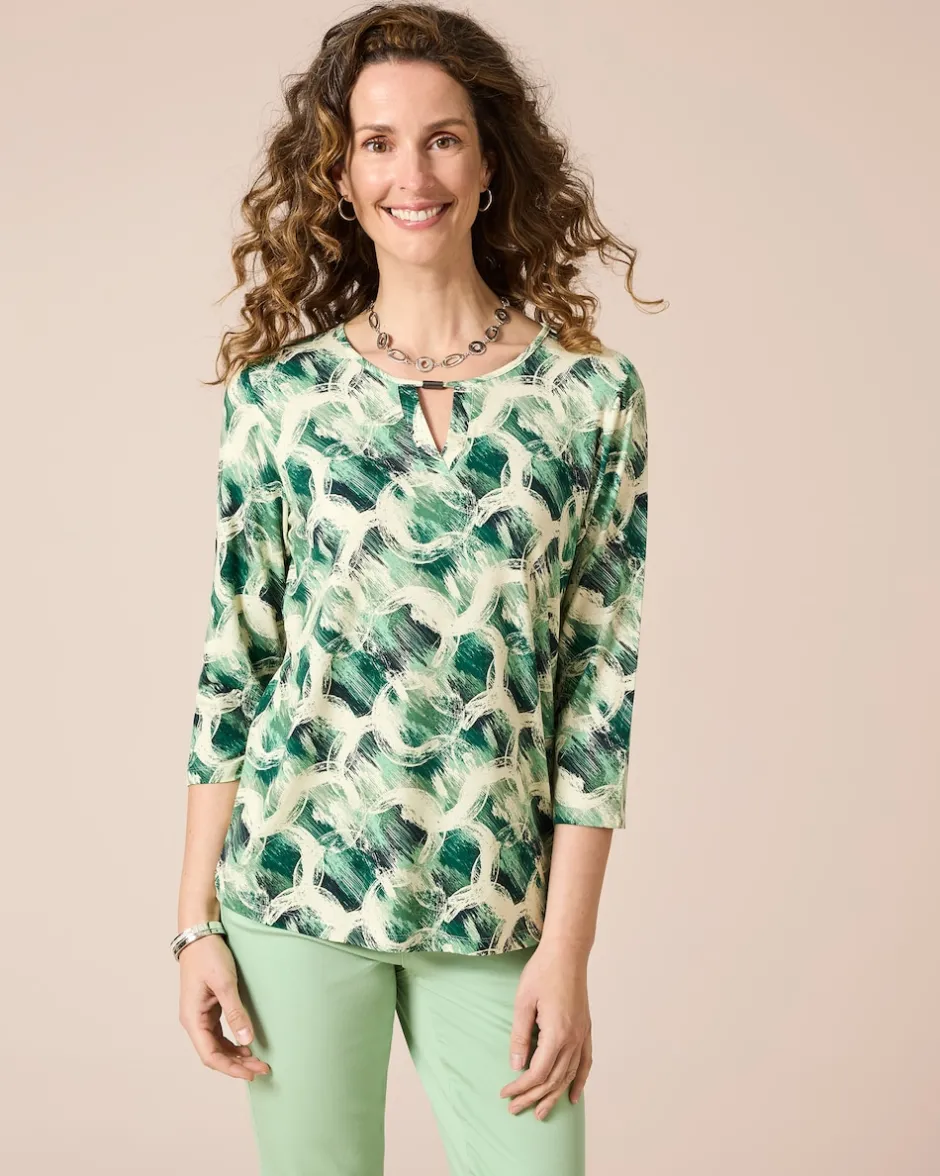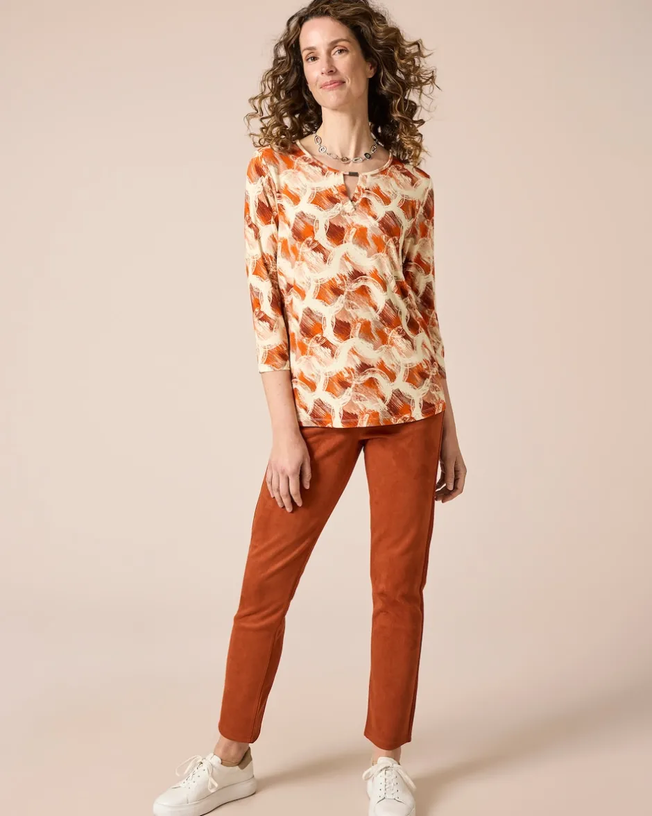 Kunstvolles Shirt mit Key-Hole-Ausschnitt