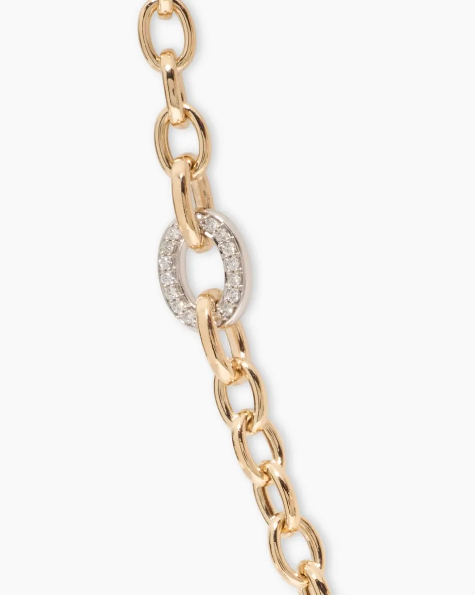 Dieses Glamour-Schmuckstück aus der Linie Diamantaire ist ein Noble-Accessoire, das zu jedem Anlass und zu jedem Styling Aufsehen erregt. Das Collier ist aus hochwertigem 585er Gelb- und Weißgold in attraktiver Bicolor-Optik gefertigt. Ein Hochglanzfinish gibt dem halsschmuck eine wertige Ausstrahlung. 180 lupenreinen Brillanten werden mit ihrem einzigartigen Glanz zum Magnet für die Blicke. Die Steine sind lupenrein, verfügen über einen guten Schliff und sind dicht an dicht im Pavé gefasst. Das halsnahe Collier ist 45 Zentimeter lang und wird mit einem Karabiner geschlossen.