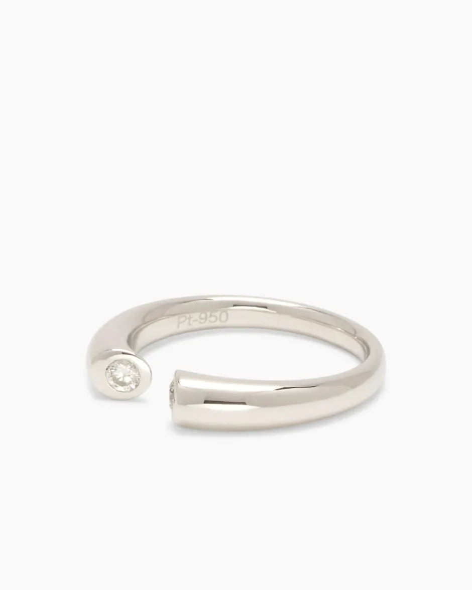 Lassen Sie sich verzaubern von der kühlen Eleganz dieses modernen Brillantrings. Die Schönheit des außergewöhnlichen Schmuckstücks lebt von der klaren, schnörkellosen Linienführung, wobei die offenen Ringenden jeweils mit exquisiten Brillanten besetzt sind. Die luxuriösen Steine sind lupenrein und haben eine sehr gute Schliffqualität. Dabei ergänzen sich ihr helles Strahlen und das hochglanzpolierte Platin (950) zu einem perfekten kleinen Gesamtkunstwerk. Freuen Sie sich auf zeitlos elegantes Schmuckstück, das Ihnen täglich Freude bereiten wird.