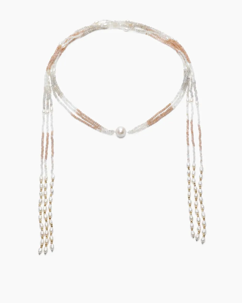 Das Sogni d’oro Classic Collier mit Mondstein in Multicolor-Optik überzeugt durch sein originelles Schal-Design – es ist dreireihig gearbeitet und wird einfach wie ein Schal um den Hals gelegt. Mondstein-Kugeln in verschiedenen Farben und Größen werden hier mit goldfarbenen Hämatit-Kugeln und Süßwasserzuchtperlen in Barockform kombiniert. Eine große runde Süßwasserzuchtperle bildet den Mittelpunkt und kommt auf Ihrem Dekolleté zum Liegen. Alle Edelsteine und Perlen sind auf Perlseife gefädelt. Die Gesamtkarat betragen ca. 155 ct. Gönnen Sie sich dieses besondere Schmuck-Highlight für den Sommer.
