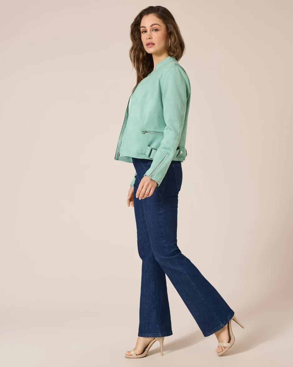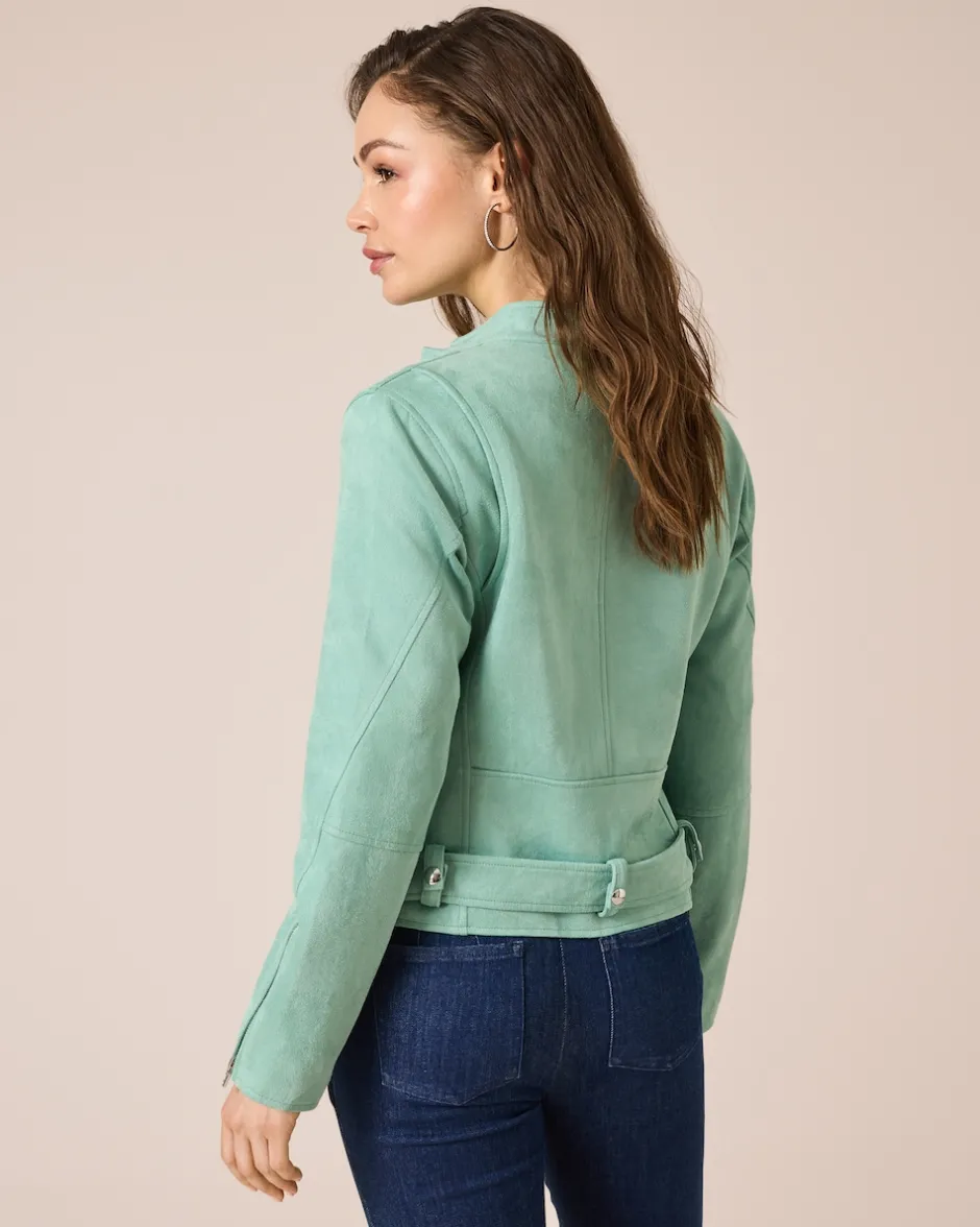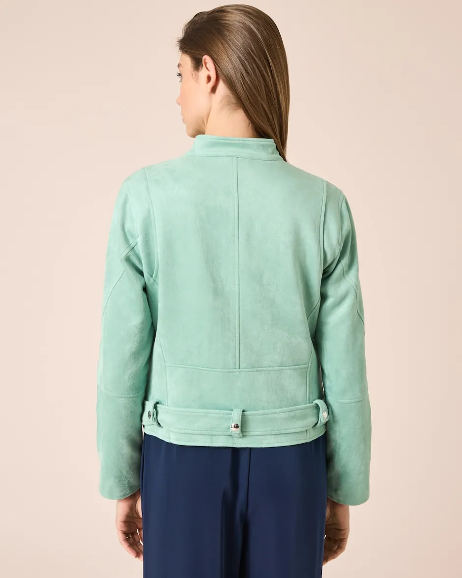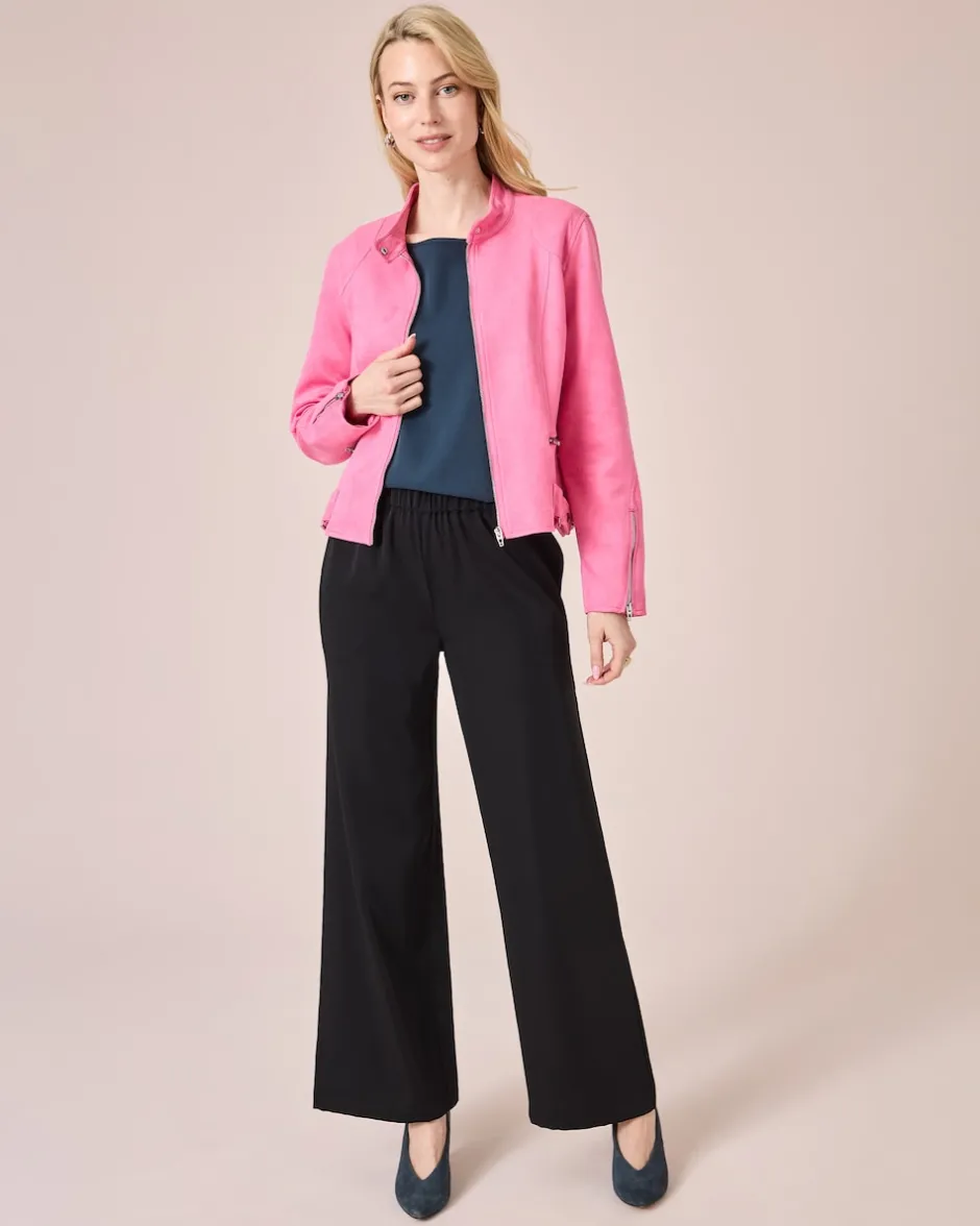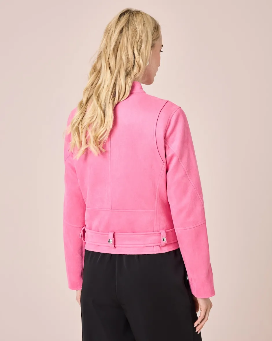 Setzen Sie ein Statement mit unserer lässigen kurzen Jacke aus feinem Wildlederimitat. Die elastische Qualität sorgt für eine optimale Passform und hohen Tragekomfort. Die Jacke ist im angesagten Biker-Style designt und zeigt die charakteristischen Reißverschlussdetails an Ärmeln und Taschen. Der gerade Saum ist mit rockigen Riegeln verziert. Formende Teilungsnähte betonen Ihre Silhouette, während das angenehme Innenfutter für einen Hauch von Luxus sorgt. Ob fürs Büro oder schicke Abendveranstaltungen – mit der Biker-Jacke genießen Sie immer einen lässigen Auftritt.