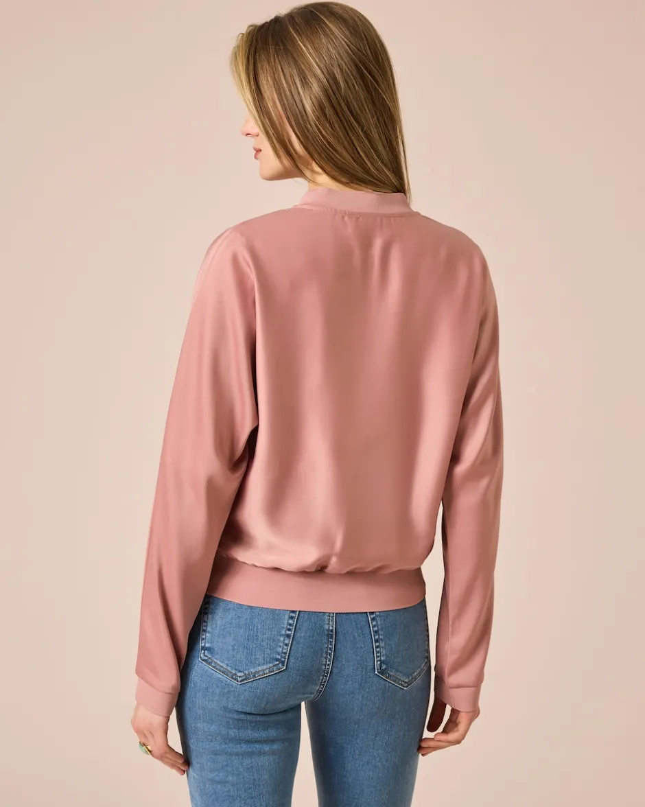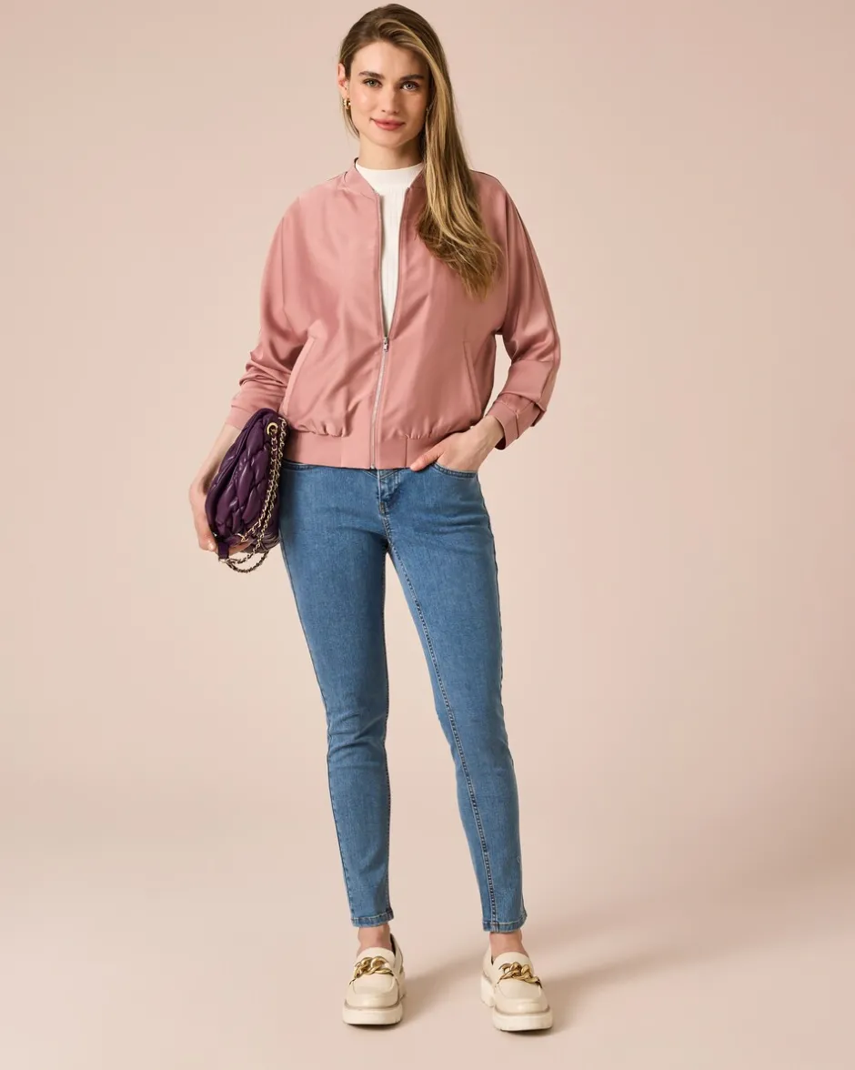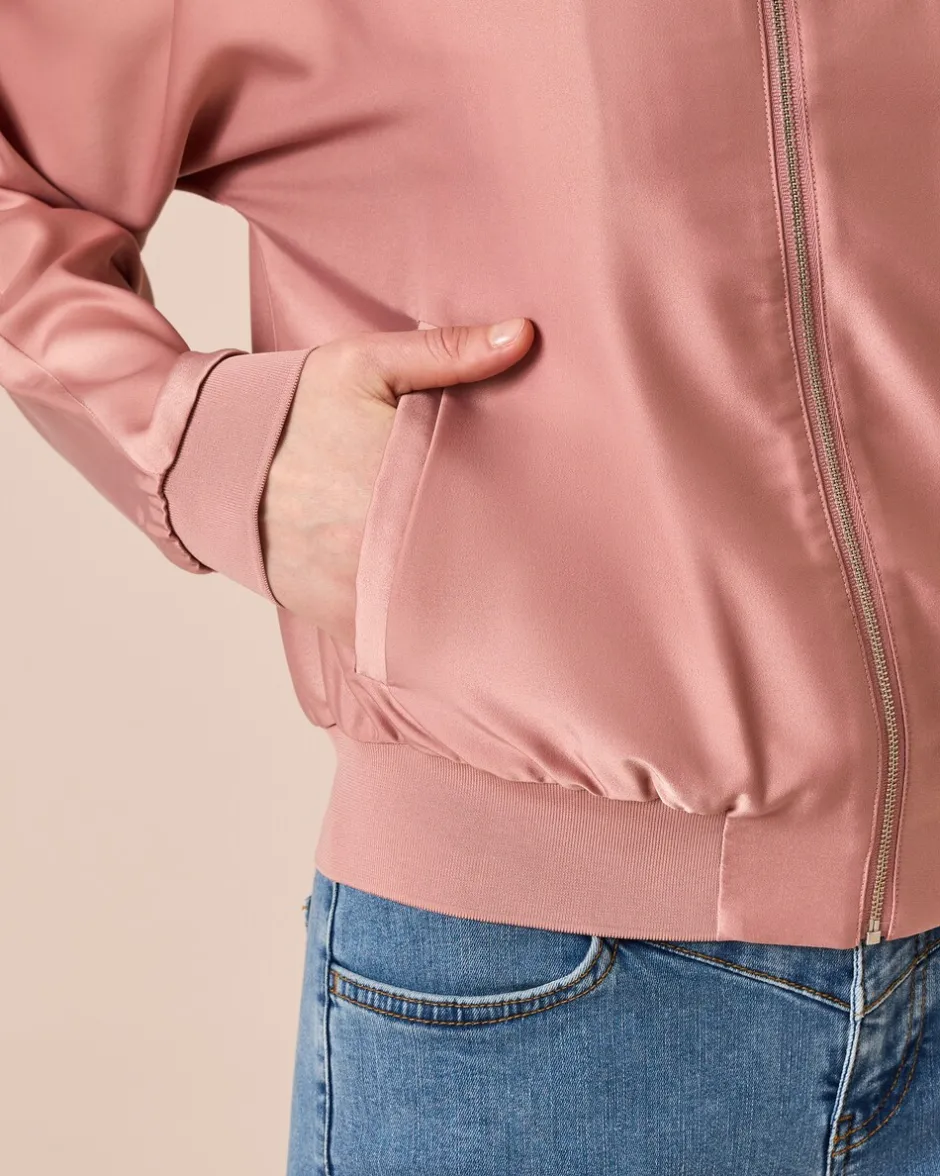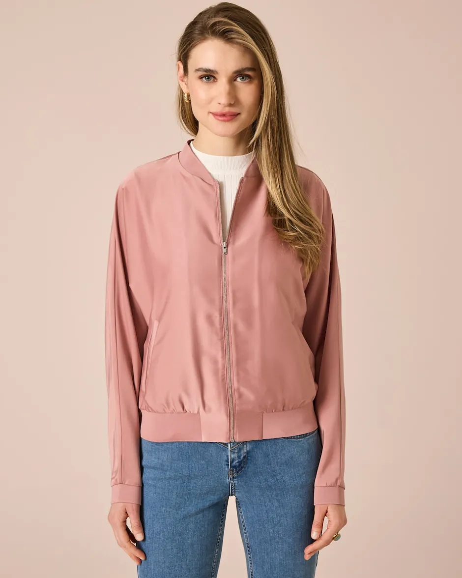Mit diesem stylischen Blouson aus zart glänzendem Satin sind Sie modisch up to date. Die Jacke wird mit einem Reißverschluss geschlossen und hat ein elastisches Rippbündchen am Saum und an den Ärmelenden. Ein Rundhalsausschnitt und lässige Seitentaschen machen den Fashion Hit komplett. Der Blouson passt zu jedem Look – ob leger mit Jeans oder schick mit feiner Hose, Sie geben eine gute Figur ab.