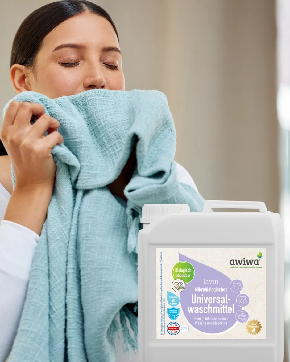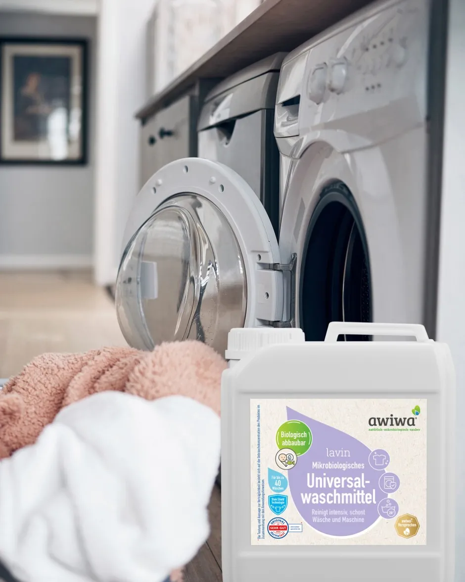 | Anwendung: | Vor Gebrauch gut schütteln. Pro Waschvorgang Awiwa lavin gemäß Dosierungstabelle in das Waschmittelfach geben. Vor Erstanwendung Waschmittelfach von bisherigen Waschmittelresten säubern. Nicht in Kombination mit Desinfektionsmittel verwenden. |