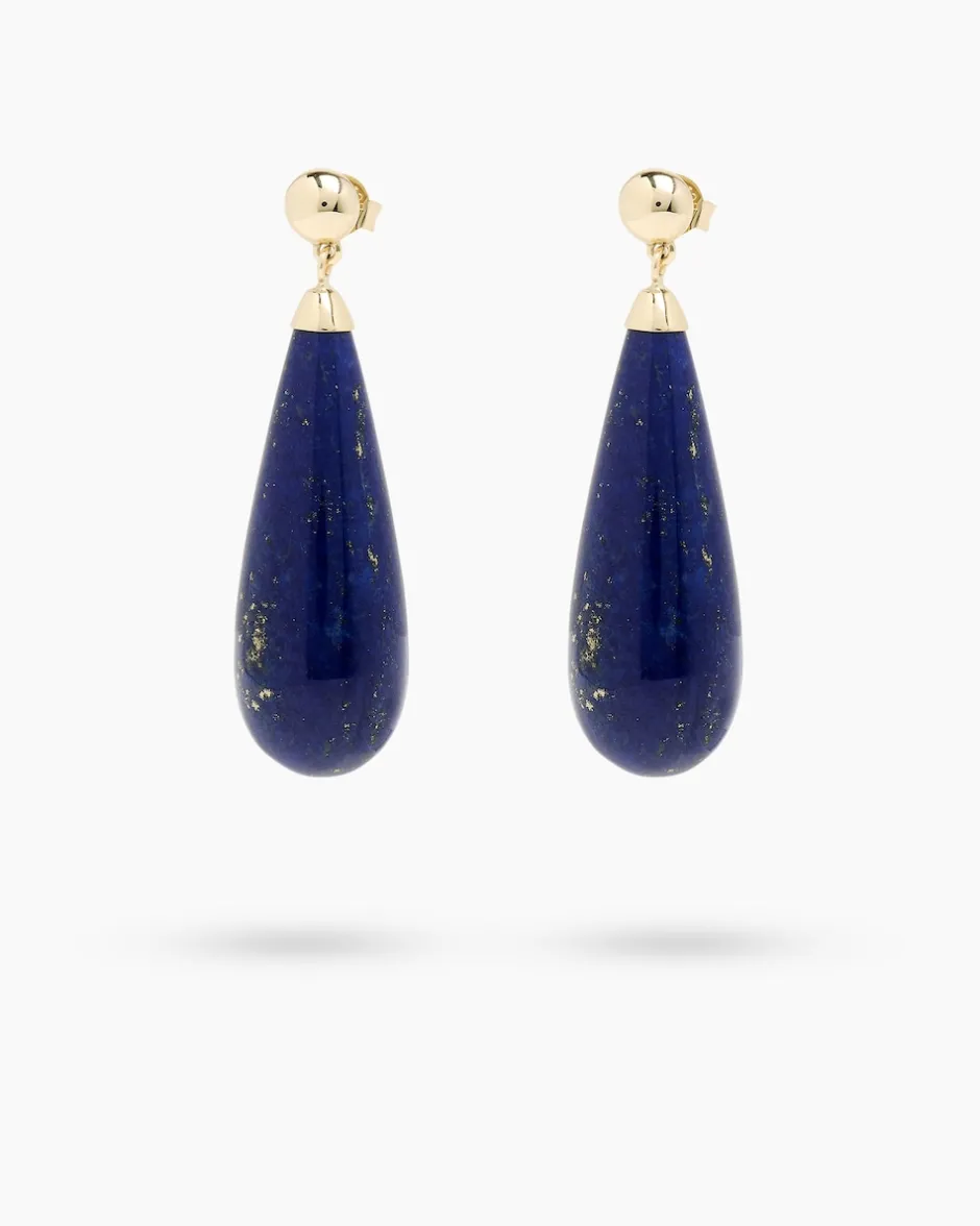 Haben Sie ein Faible für schöne Edelsteine? Für die Farben des (Nacht-)Himmels, der Harmonie und die von edlem Metall? Dann dürfte die hinreißende Mischung aus leuchtend dunkelblauem Lapislazuli und warmem Gelbgold genau das Richtige für Sie sein. Der riesige Lapis in eleganter Pendelform ist glatt poliert, so kann er seine innewohnende Schönheit optimal entfalten. Die Edelsteine gefallen auch durch ihre eindrucksvolle Größe mit 3,5 cm Länge. Bei jeder Kopfbewegung schwingen die Lapislazuli sachte hin und her – und bilden so einem anmutigen Rahmen für Ihr Gesicht.