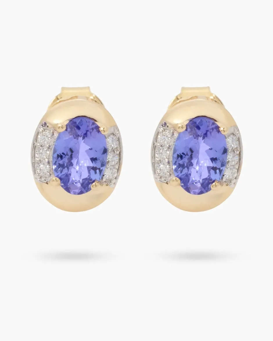 Gold-Ohrstecker mit schillerndem Tansanit & funkelnden Brillanten