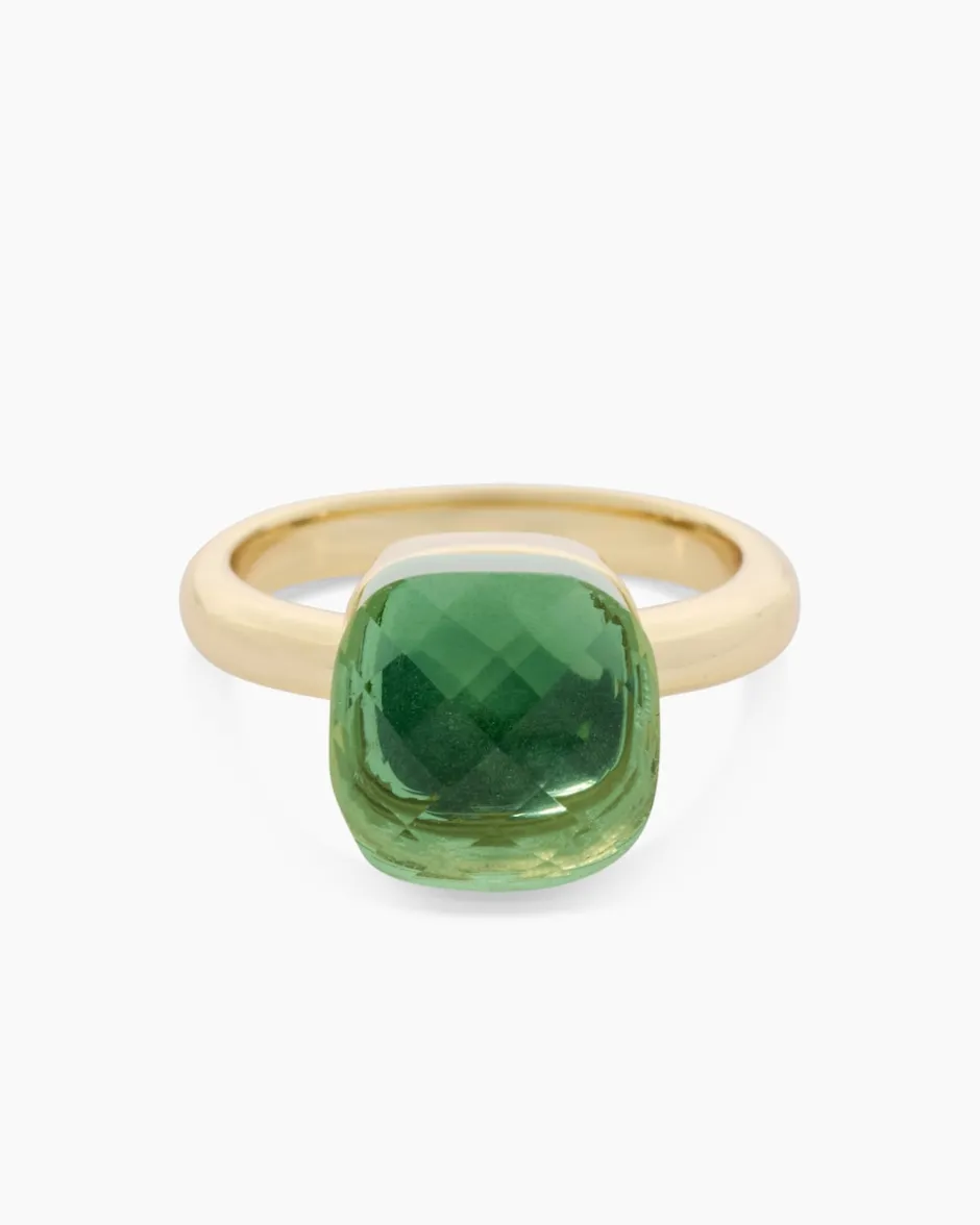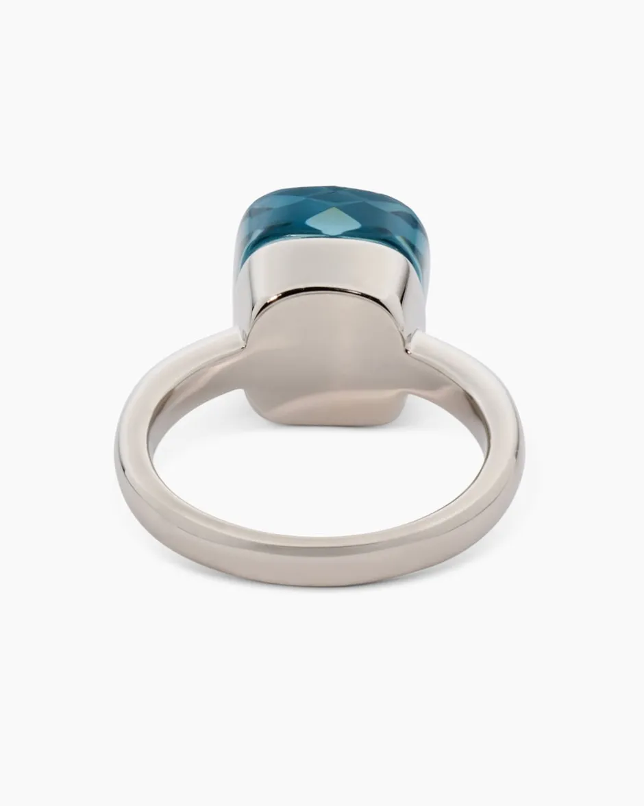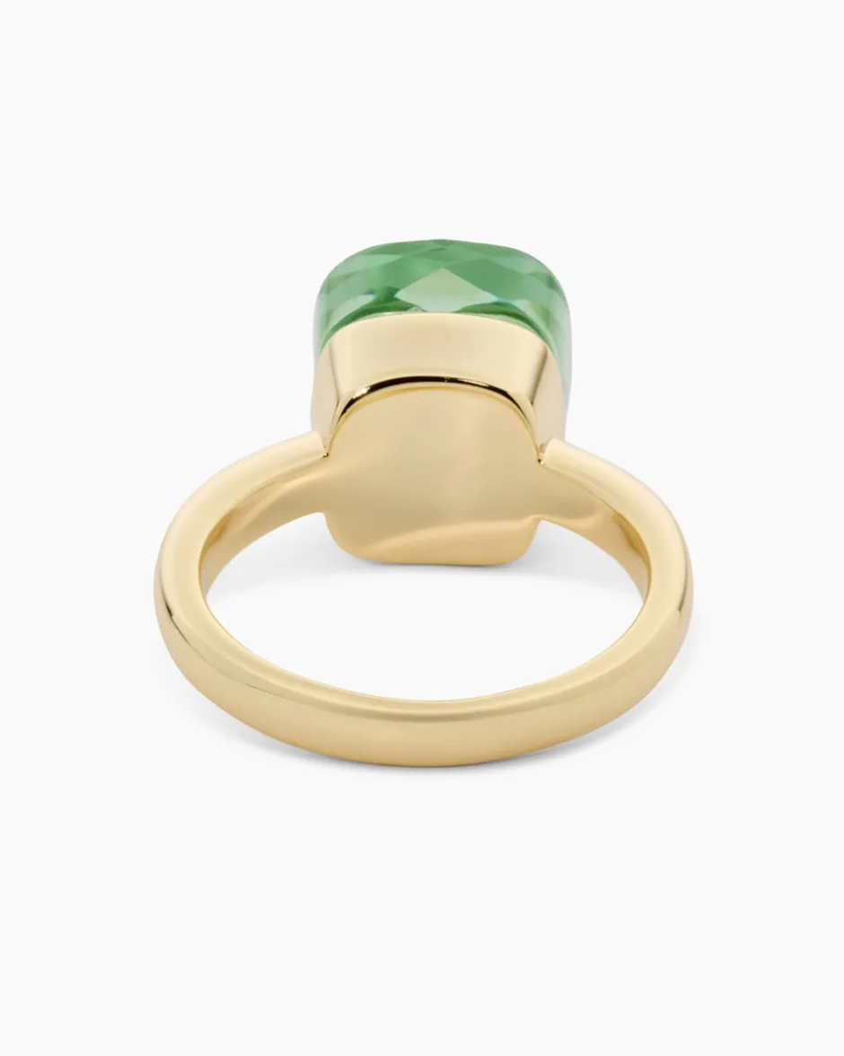 Der Ring mit filigraner Ringschiene ist mit einem kissenförmigem Glasstein ausgefasst. DerStein ist facettiert, wodurch die jeweilige Farbe mit Glitzerakzenten begeistert. Der Messingring ist in zwei Varianten erhältlich: gelbvergoldet mit warmem Goldschimmer oder palladiniert in kühl-eleganter Weißgoldoptik natürlich auf Hochglanz poliert. Dieser farbenfrohe Ring rundet jeden Look stilvoll ab und macht jede Ihrer Gesten zum Blickfang.