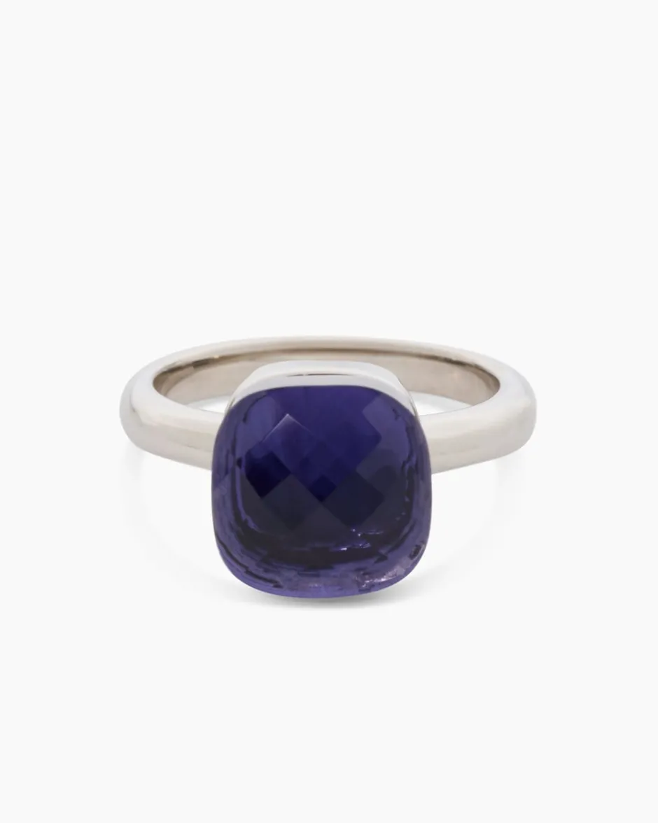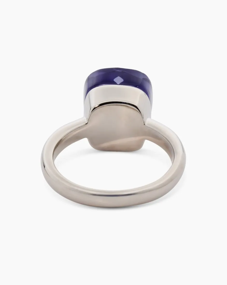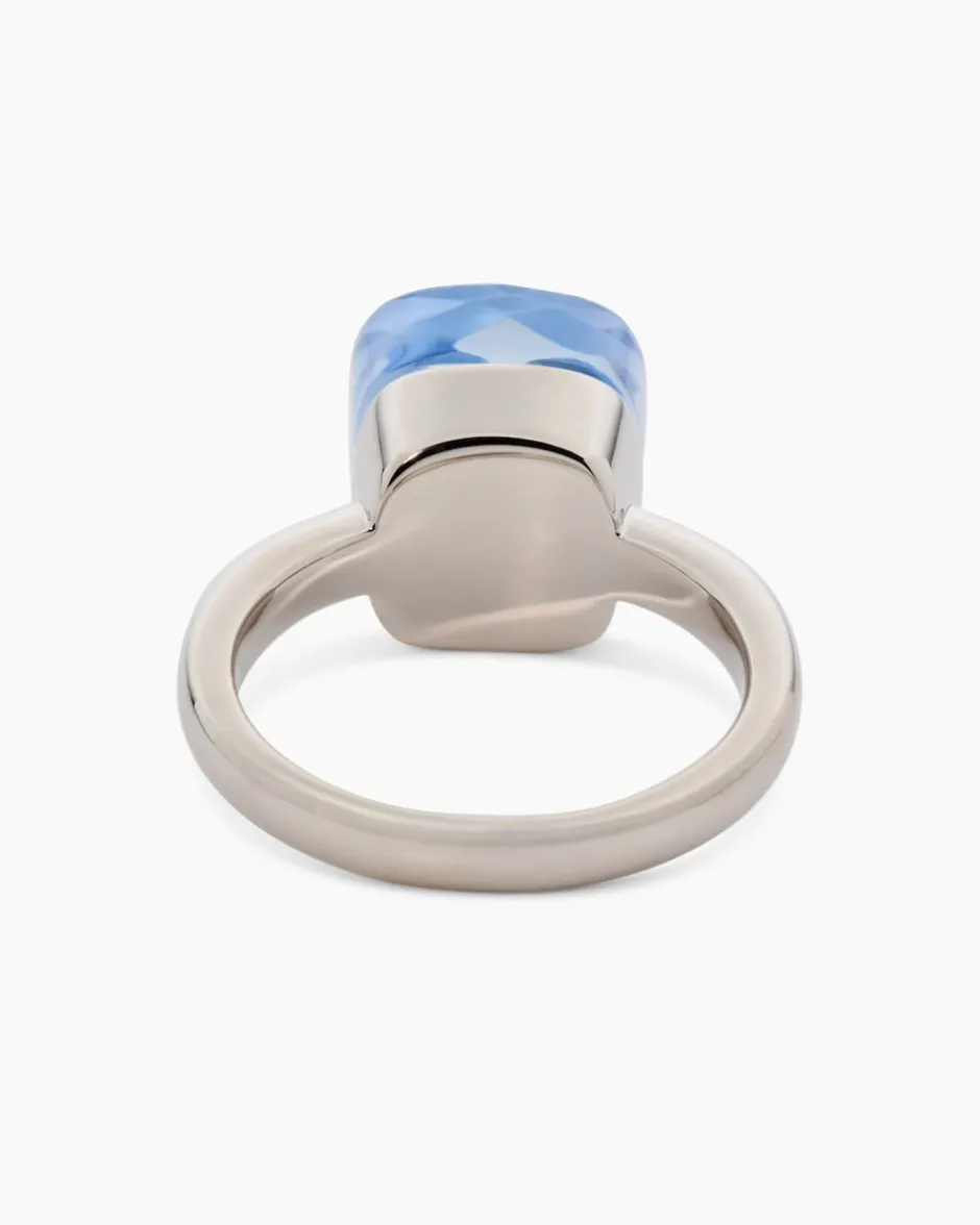 Der Ring mit filigraner Ringschiene ist mit einem kissenförmigem Glasstein ausgefasst. DerStein ist facettiert, wodurch die jeweilige Farbe mit Glitzerakzenten begeistert. Der Messingring ist in zwei Varianten erhältlich: gelbvergoldet mit warmem Goldschimmer oder palladiniert in kühl-eleganter Weißgoldoptik natürlich auf Hochglanz poliert. Dieser farbenfrohe Ring rundet jeden Look stilvoll ab und macht jede Ihrer Gesten zum Blickfang.