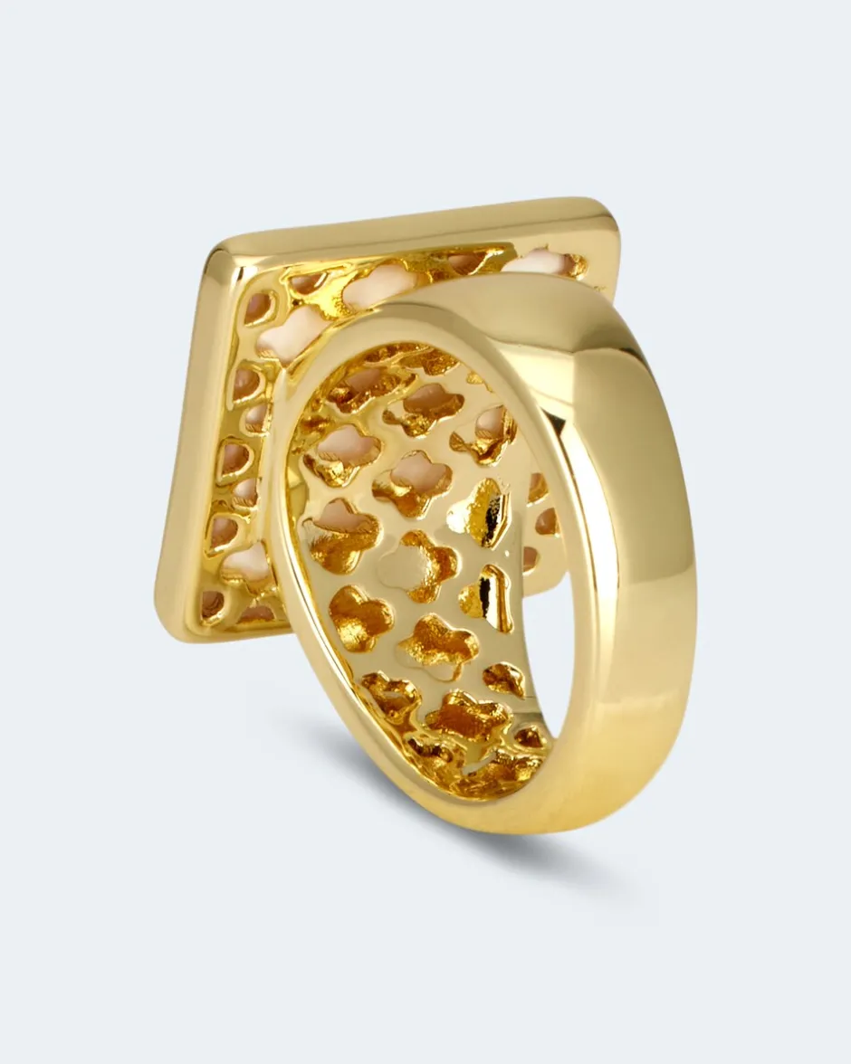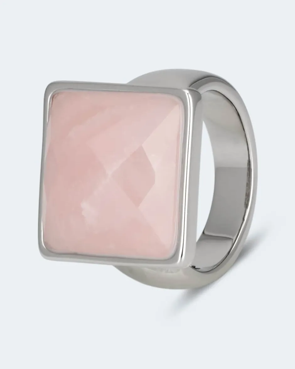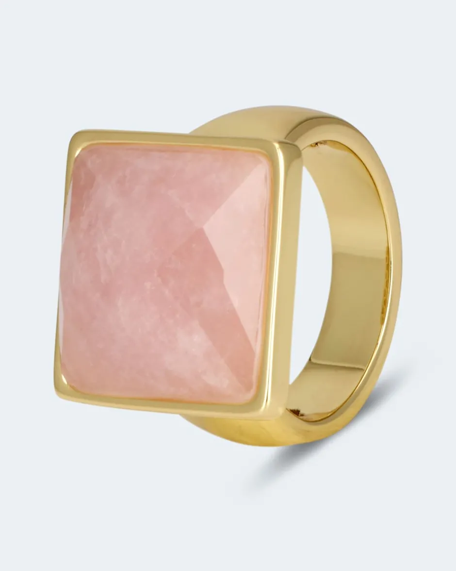 Durch seine große, quadratische Form und den zarten Farbton wird dieser Rosenquarz-Ring zu einem faszinierenden Blickfang an Ihrer Hand. Das cleane Design wirkt elegant und modern zugleich und kann zu den unterschiedlichsten Styles und Anlässen getragen werden. Je nach Geschmack können Sie den Ring mit gelbvergoldetem oder palladiniertem Finish bestellen. Ein Schmuck-Highlight der Linie Jana Ina Jewellery.