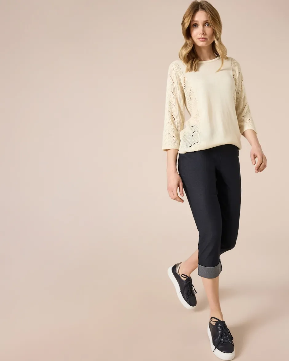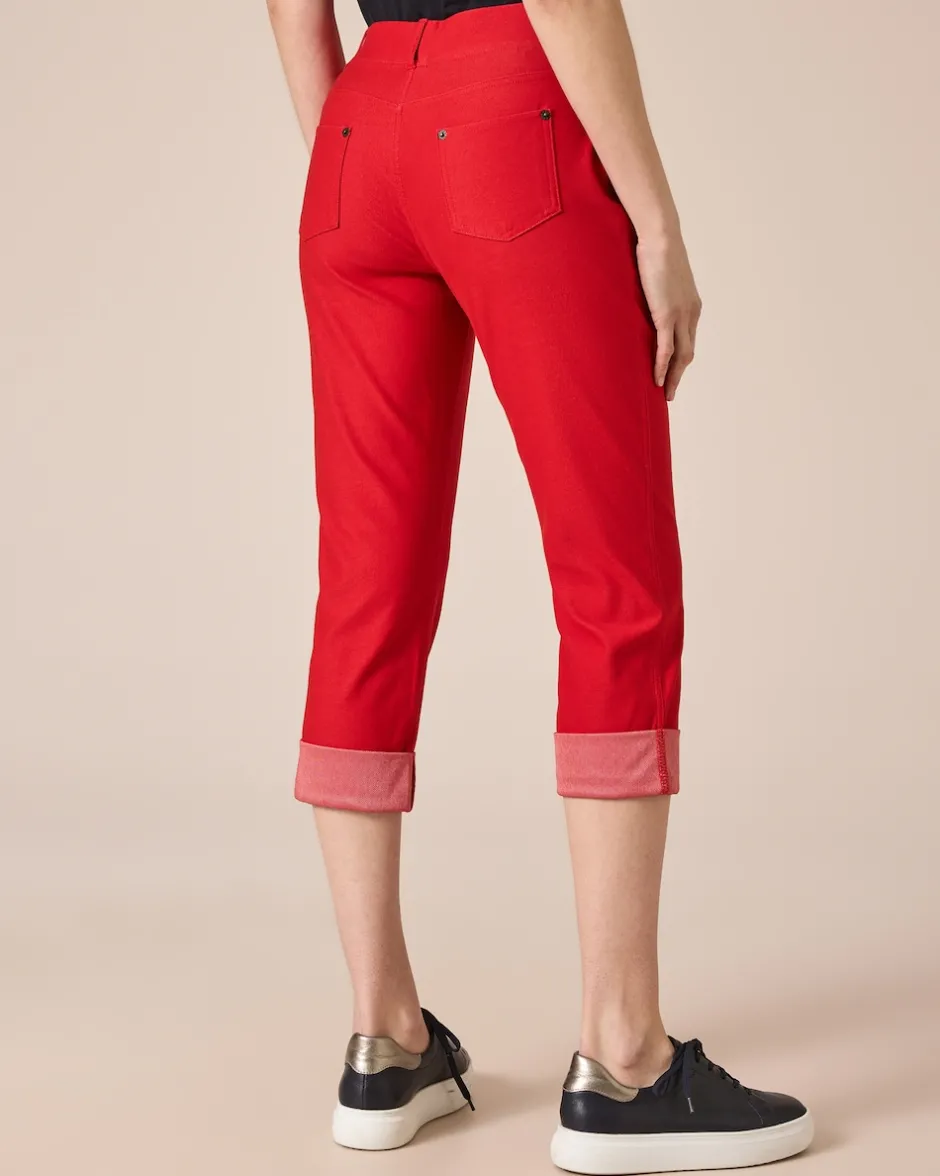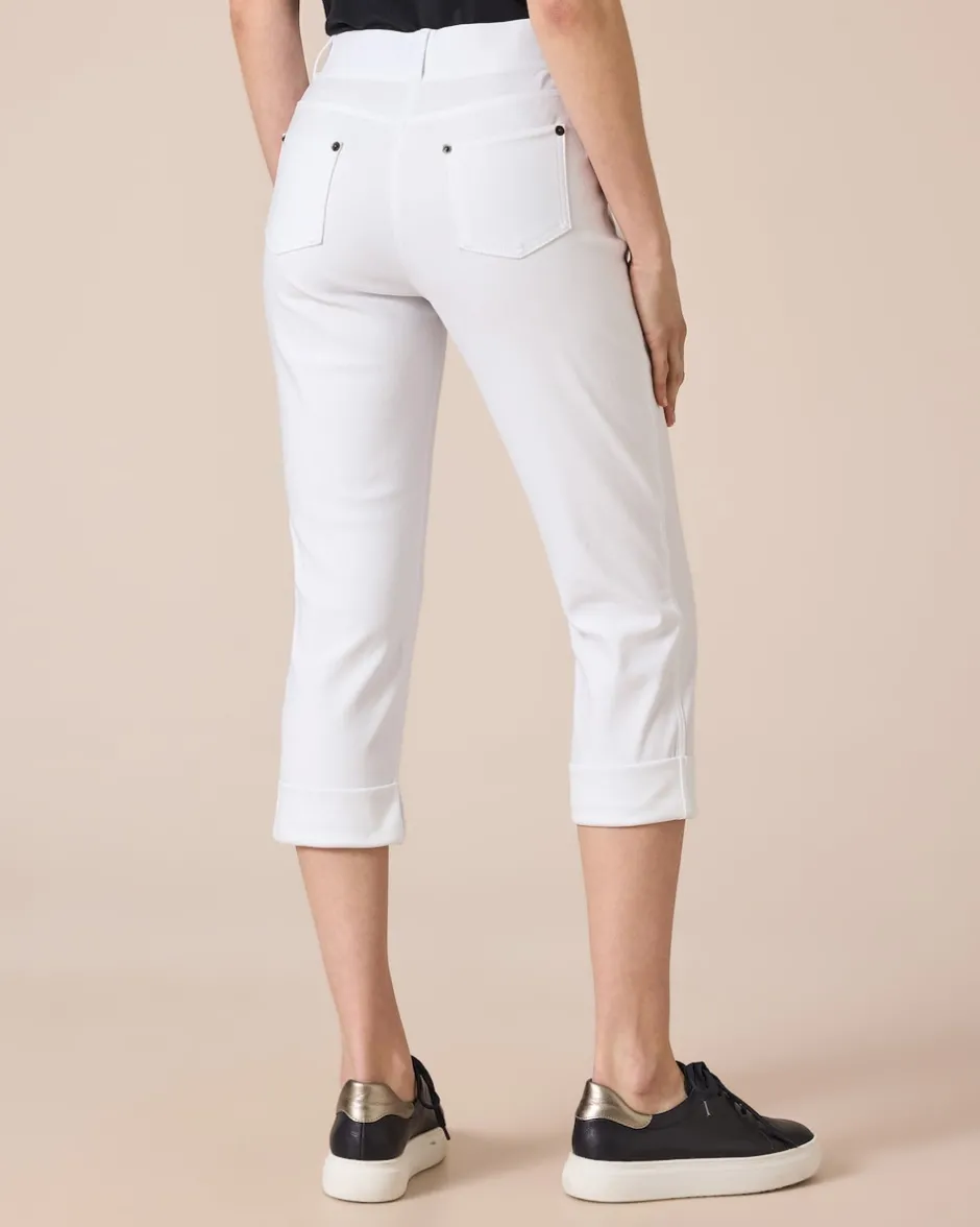 Die vielseitige Schlupfhose aus der aktuellen Kollektion von Helena Vera ist ein echter Figurschmeichler. Das unifarbene Design sorgt für echte Kombinationsvielfalt. Dabei ist das Tragegefühl der Schlupfhose super bequem. Die robuste, schmutz- und wasserabweisende Easy Protection Ausrüstung macht sie perfekt für Ihre Alltagsabenteuer. Ihre neue Hose in 3/4-Länge hat einen geraden Schnitt mit enganliegendem Bein und Umschlag am Saum. Gesäßtaschen mit Nieten und angedeutete Fronttaschen machen das unkomplizierte Design lässig komplett.