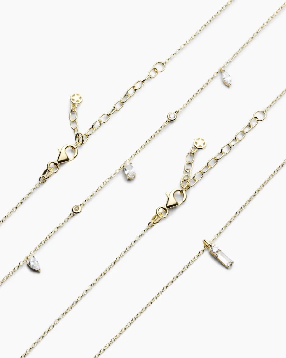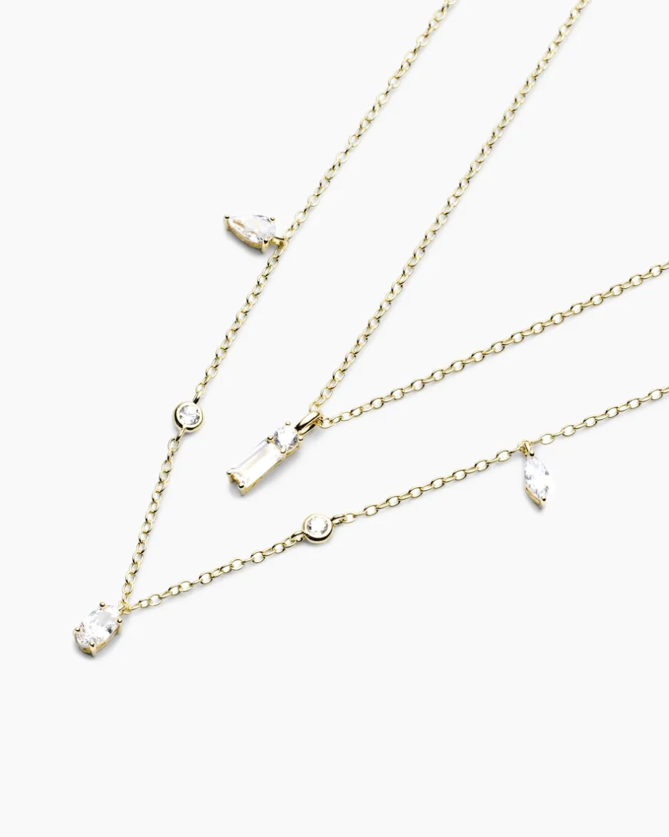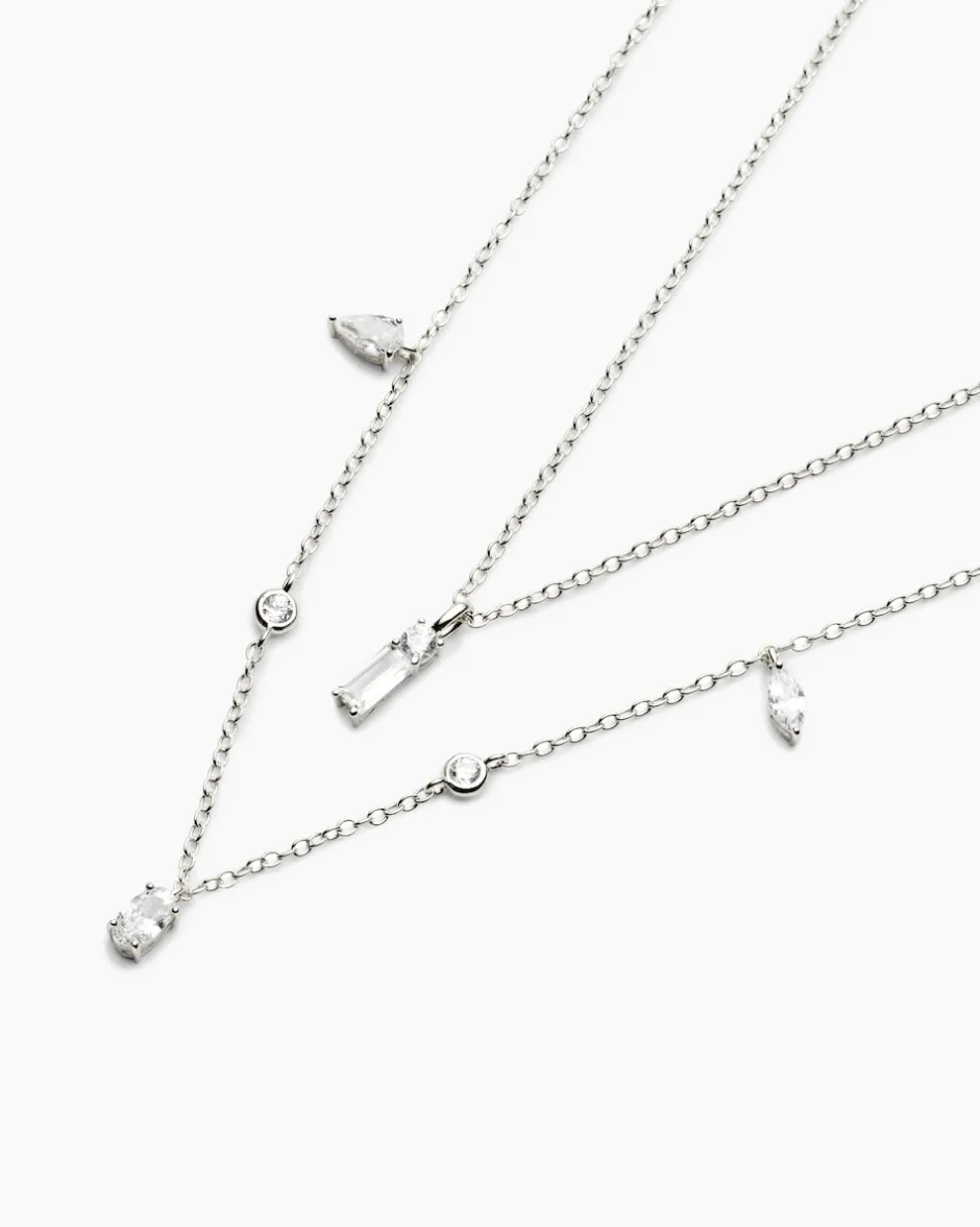 Es liegt voll im Trend, mehrere Ketten und Colliers – in verschiedenen Längen und Designs – miteinander zu kombinieren. Dafür ist dieses Schmuck-Set von THOM by Thomas Rath Couture-Schmuck genau das Richtige. Sie erhalten zwei Halsketten in verschiedenen Längen, die mit je drei funkelnden Zirkonia in unterschiedlichen Formen verziert sind. Das Schmuck-Set ist in zwei Legierungen erhältlich. Wählen Sie die vergoldete Variante, wenn Sie lieber Goldschmuck tragen oder die rhodinierte als Silberschmuck-Fan. Ein Hochglanzfinish gibt dem Schmuck-Ensemble den letzten Schliff.