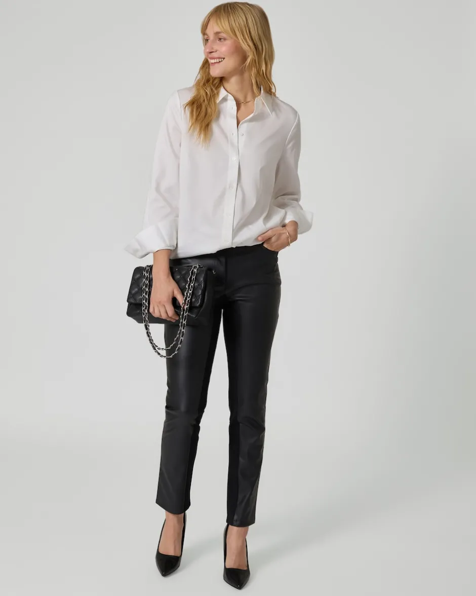 | Schnittform: | Gerader Schnitt: Leicht anliegend an Oberschenkel und Knie – gerader bis schmaler Saum | |