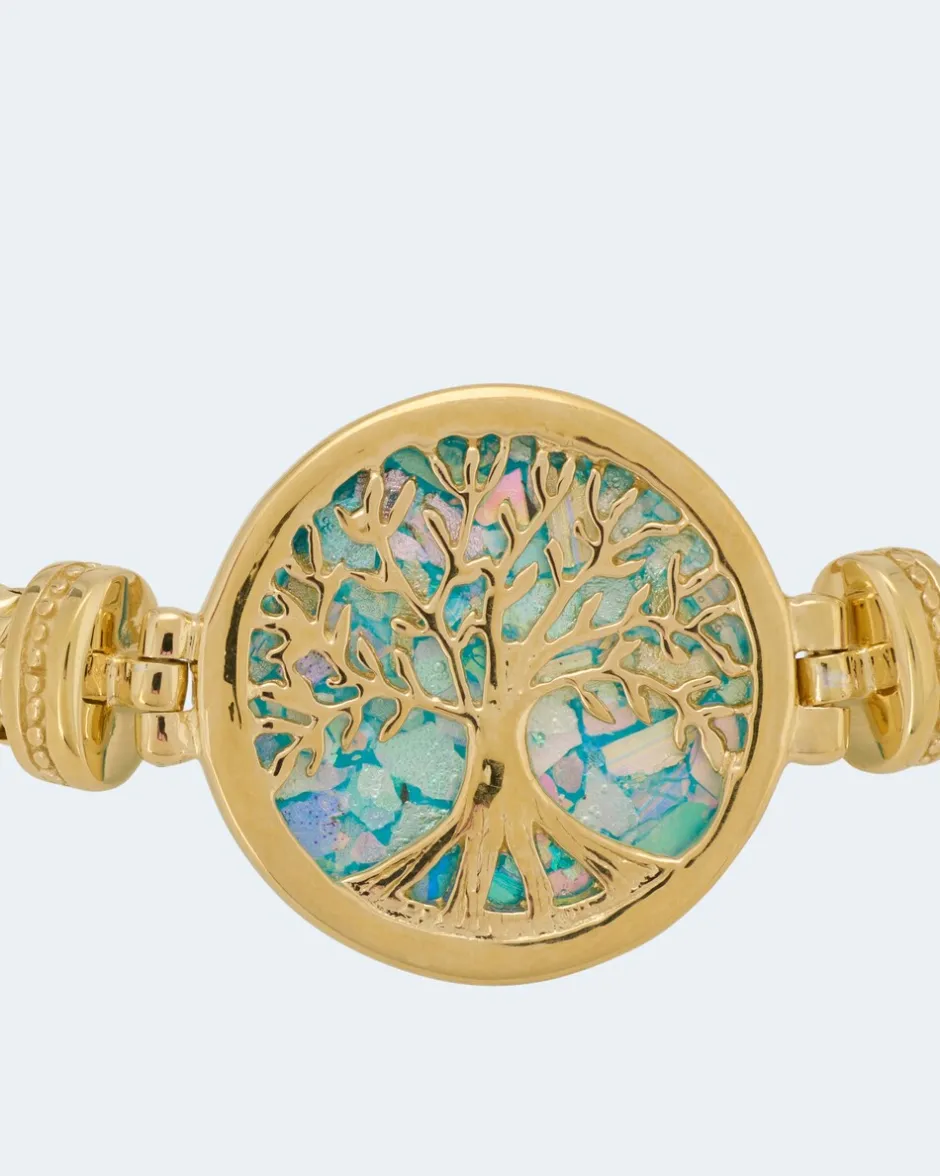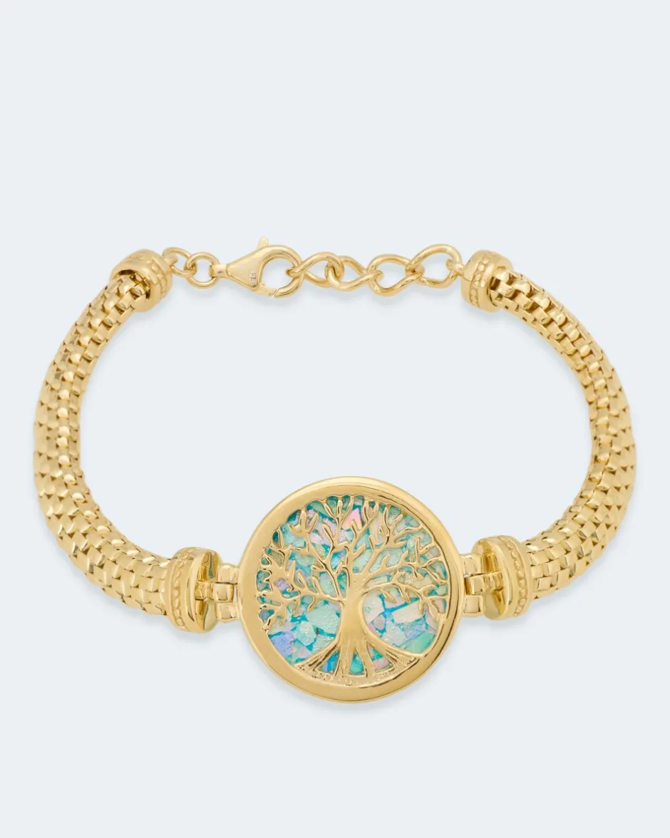 Das Armband aus der neuen Kollektion von Harry Ivens verzaubert mit einem einzigartigen, runden Design-Element aus Römischem Glas in mehrfarbiger Gestaltung. Harmonisch ergänzt durch den „Baum des Lebens“ in sonnenwarmer Gelbgold-Optik vor der Motiv-Scheibe. Tipp: Einen passenden Anhänger in ähnlichem Stil finden Sie unter 470127.