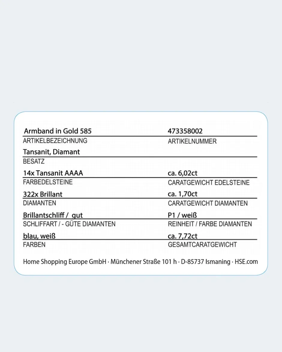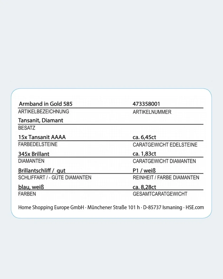 Verwöhnen Sie sich mit dem unvergleichlichen Glanz unseres exquisiten Armbands, gefertigt aus hochglanzpoliertem 585er Gelbgold. Dieses luxuriöse Schmuckstück besticht durch seine besondere Kombination von ovalen, facettierten Tansaniten AAAA und funkelnden weißen Brillanten. Je nach gewählter Länge sind 14x/ 15x Tansanite und 322x/ 345x Brillanten in Krappenfassungen harmonisch eingebettet, die zusammen eine Karatgewicht von ca. 6,02 ct/ 6,45 ct bzw. 1,70 ct/ 1,83 ct ergeben. Die Schliffqualität der Brillanten ist gut, und sie besitzen eine P1-Reinheit. Das Armband wird sicher von einem Kastenschloss mit Sicherheitsacht gehalten. Ein Stück unübertroffener Eleganz, das Ihren Look auf ein neues Niveau hebt.