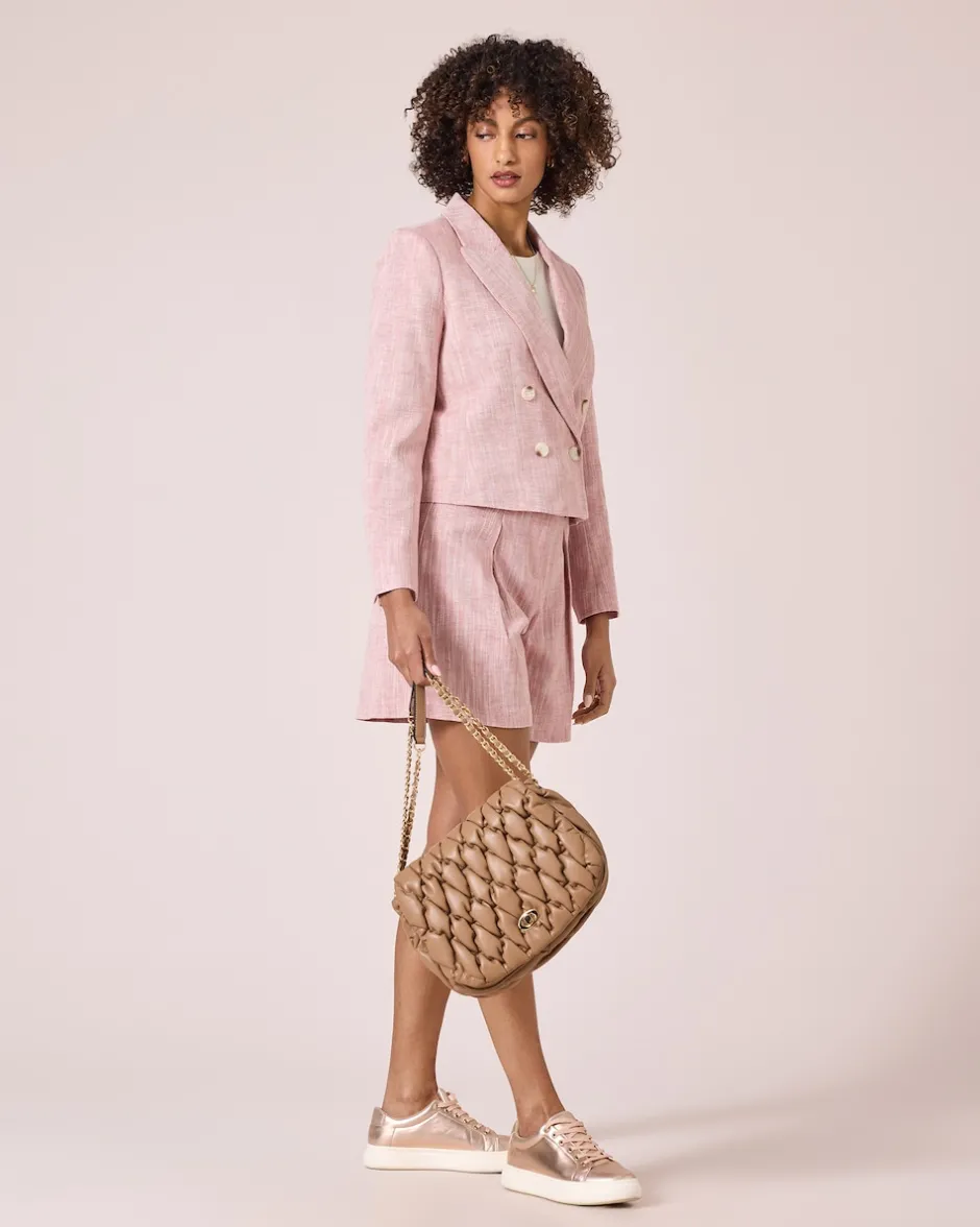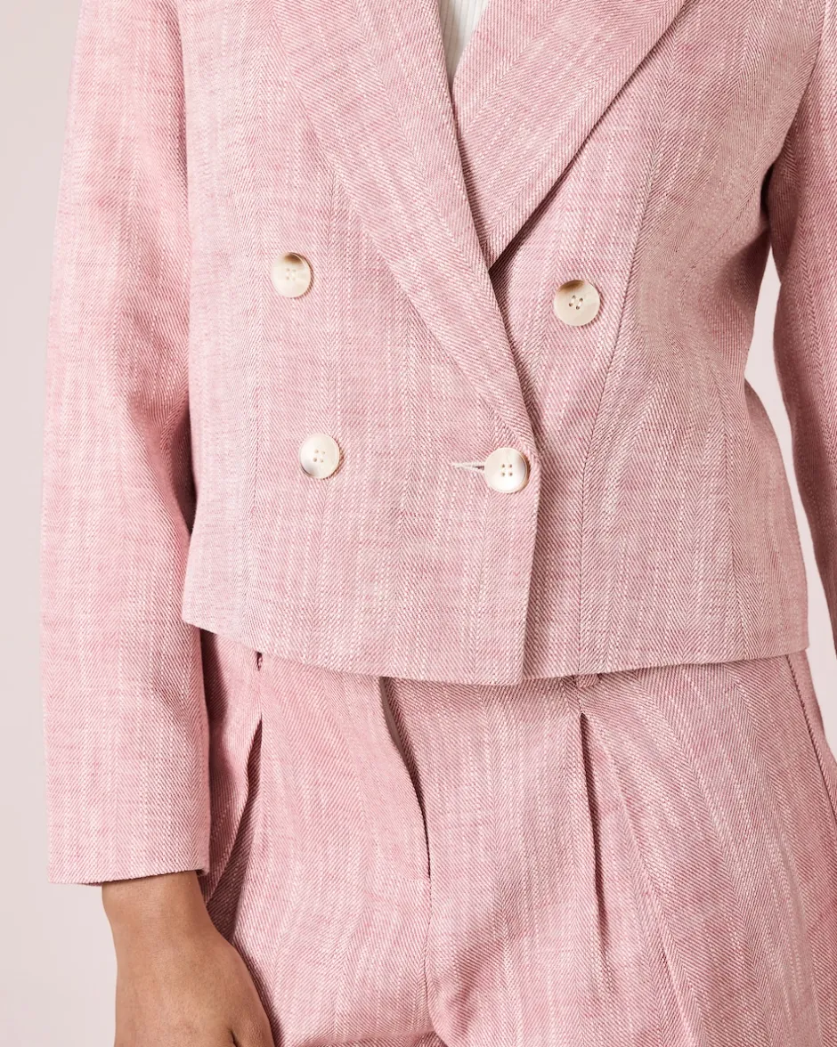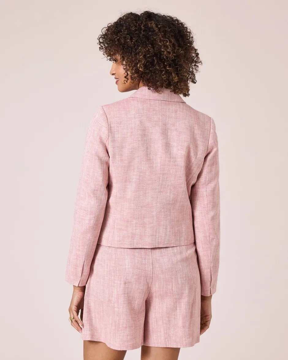 Lässig, stylisch und sehr feminin – dieser Blazer aus der neuen Kollektion von Jana Ina ist etwas ganz Besonderes. Seine Leinenoptik in der unwiderstehlichen Farbe Rosenholz verleiht dem Blazer eine frische und junge Ausstrahlung. Perfekt ergänzt durch die extra kurze Form, das breite Revers und die verspielte Doppelknopf-Optik. Tipp: Bestellen Sie am besten die Shorts im gleichen Design (474151) direkt dazu. So zaubern Sie im Handumdrehen einen frechen und coolen Look, den Sie ebenso gut im Büro wie zum Ausgehen tragen können.