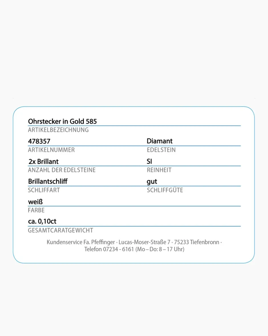 In dem mitgeliefertem Pfeffinger Zertifikat können Sie sich von der Güte der Brillanten überzeugen.
