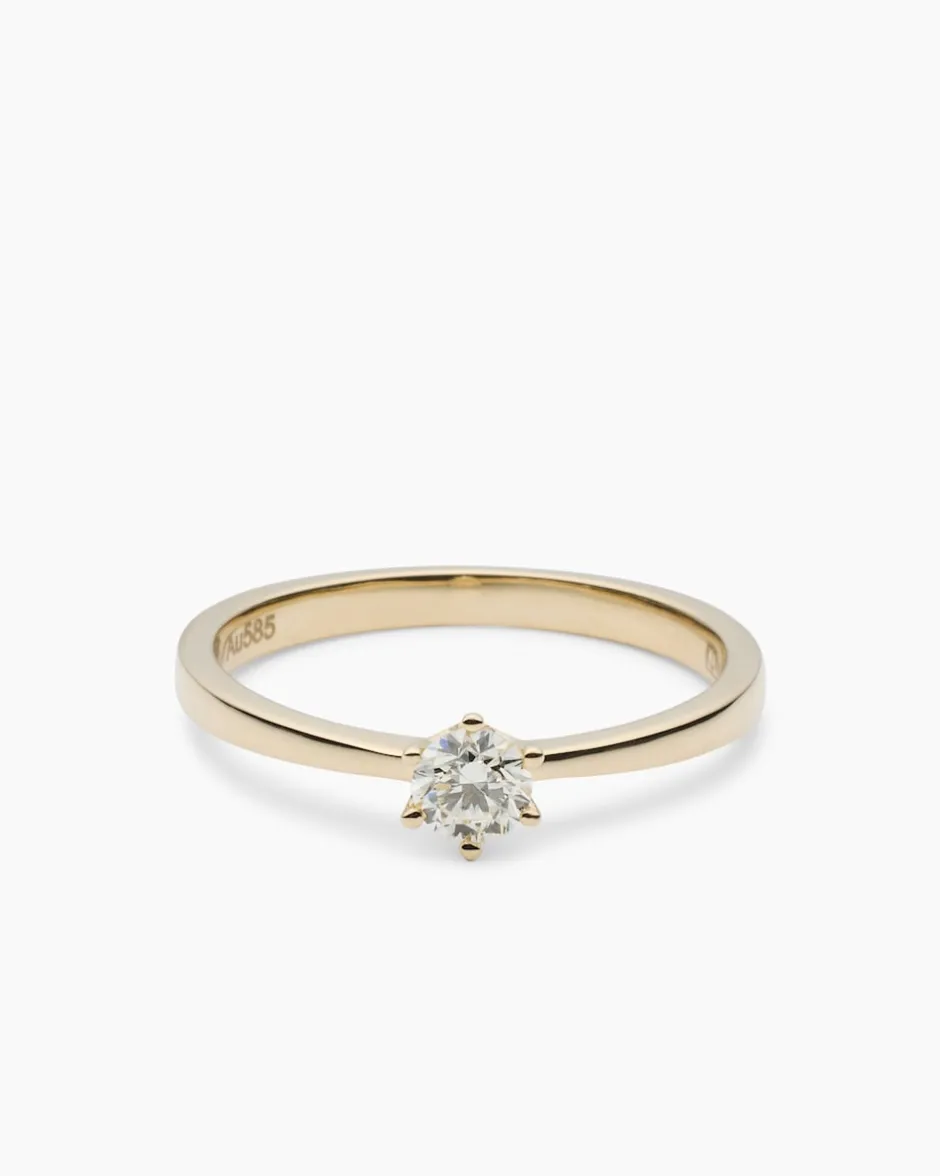 Sechs Krappen aus 585er Gelbgold halten einen strahlenden Brillant – der Solitärring ist der Klassiker unter den Brillantringen. Er ist zurecht ein Dauerbrenner, denn er beeindruckt stets durch seine stilvolle Klarheit. Pur, edel und zum Verlieben schön. Feines 585er Gelbgold hält den lupenreinen Brillant in getöntem Weiß. Die Ringschiene verjüngt sich zu dem beeindruckenden Stein und gibt ihm so Raum, um zu wirken. Feines Gold, ein wertvoller Edelstein und der Sinn für stilvolles Design sind die Zutaten für ein Schmuckstück von zeitloser Schönheit. Tragen Sie den Ring solo oder auch mit anderen Schmuckstücken, er ist in jedem Fall ein exquisiter Eyecatcher.