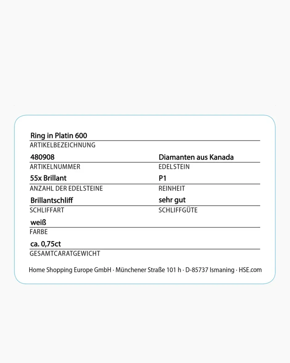 | Material: | Platin 600, hochglanzpoliert/mattiert | |