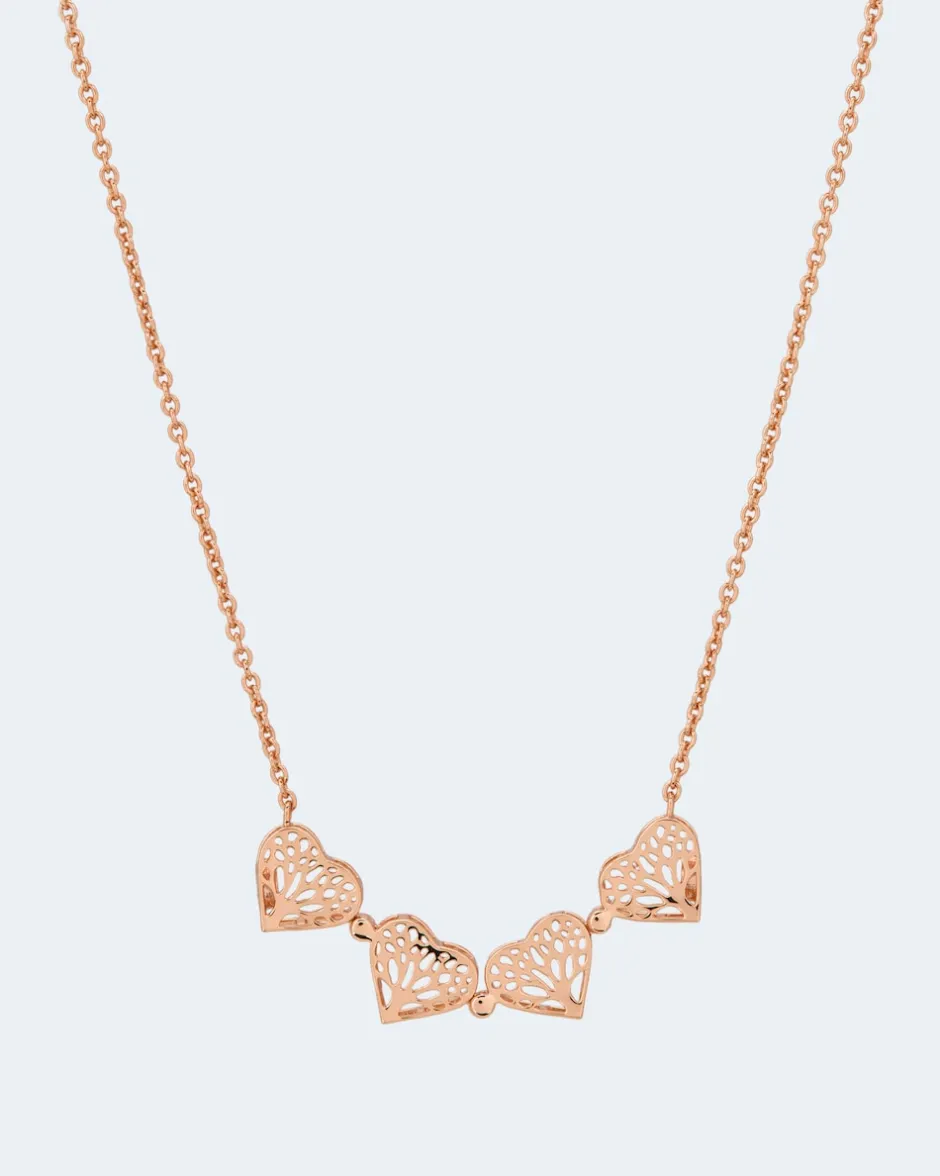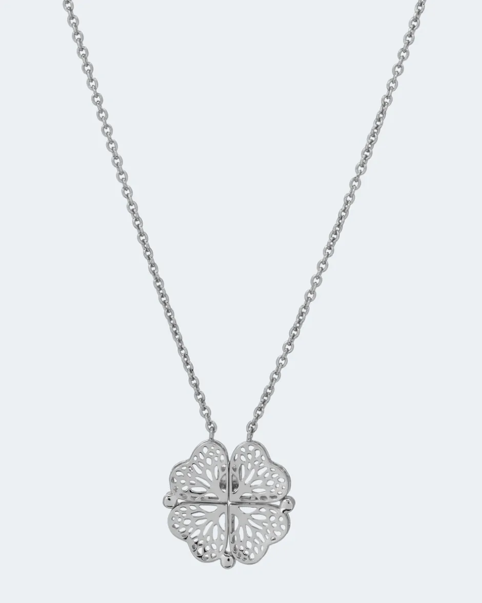 Der „Baum des Lebens“ erinnert uns jeden Tag daran, dass wir unser kostbares Leben viel bewusster genießen sollten. Das Symbol in Kleeblattform setzt sich bei diesem Collier aus vier herzförmigen Bäumchen zusammen. Der Clou: Der Anhänger mit kleinen Magneten ist aufklappbar, dann sind die vier Herz-Bäume nebeneinander aufgereiht. So oder so ein unwiderstehlicher Hingucker in Ihrem Dekolleté. In drei edlen Legierungen zur Wahl: silberweiß rhodiniert, gelb- oder rosévergoldet.
