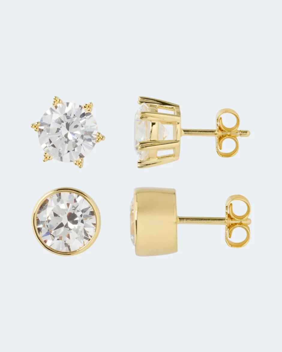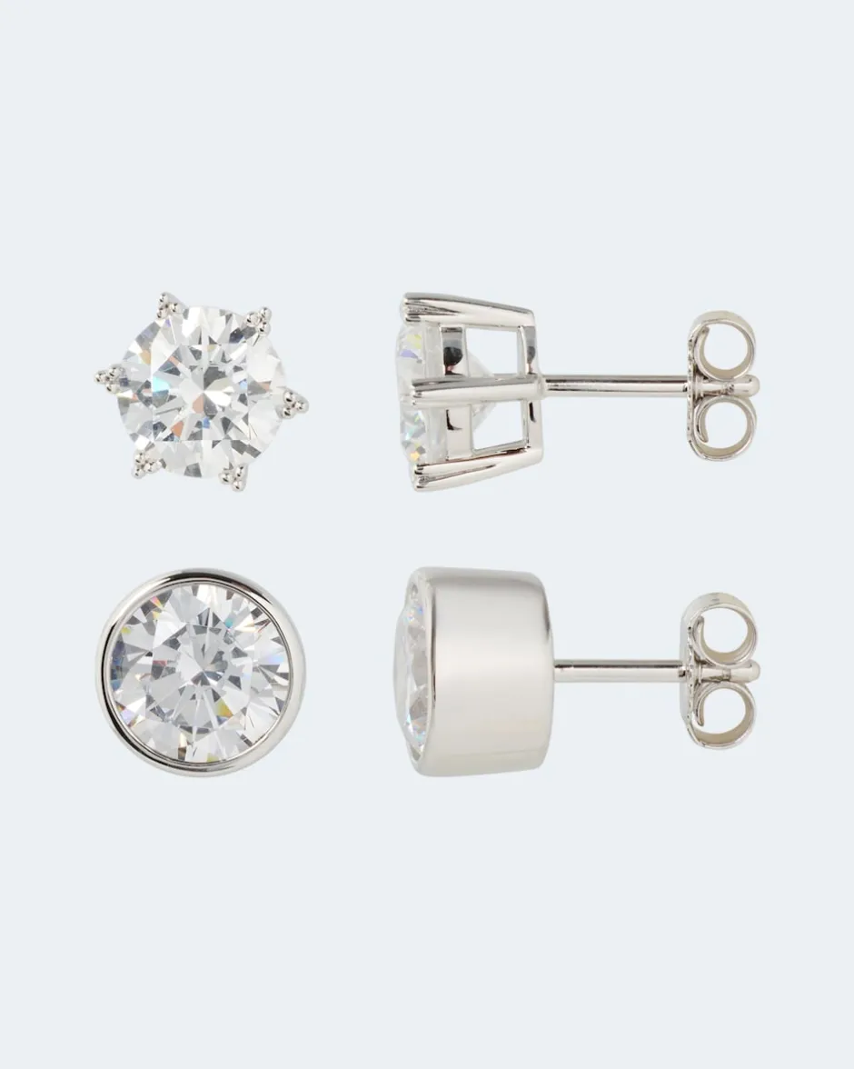 Diese hübschen kleinen Glamour-Ohrstecker gehen wirklich immer. Und weil sie so vielseitig sind, erhalten Sie gleich zwei Paar davon: Eins davon mit Zirkonia in Krappenfassung und eins mit Zirkonia in Zargenfassung. Alle vier Zirkonia-Steine sind sorgfältig facettiert und sorgen so für hellstrahlende Glitzer-Akzente an Ihrem Ohr. Ob zu eleganten, modischen oder lässigen Stylings – dieser Schmuck passt.