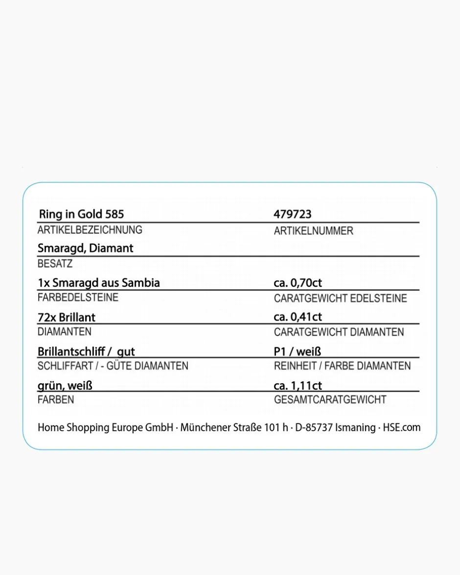 | Edelsteine: | 1x Smaragd, grün Herkunft: Sambia | |