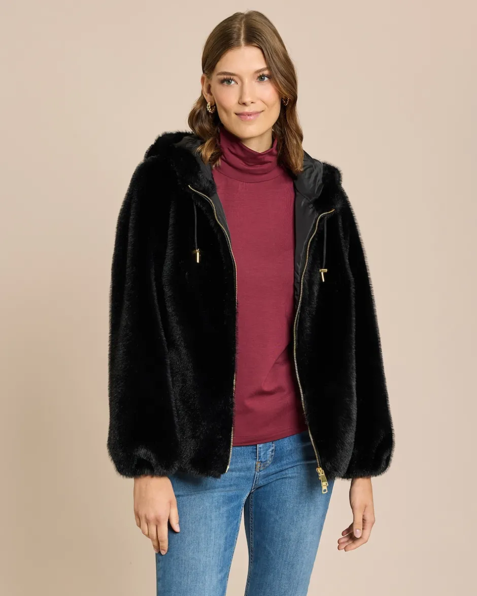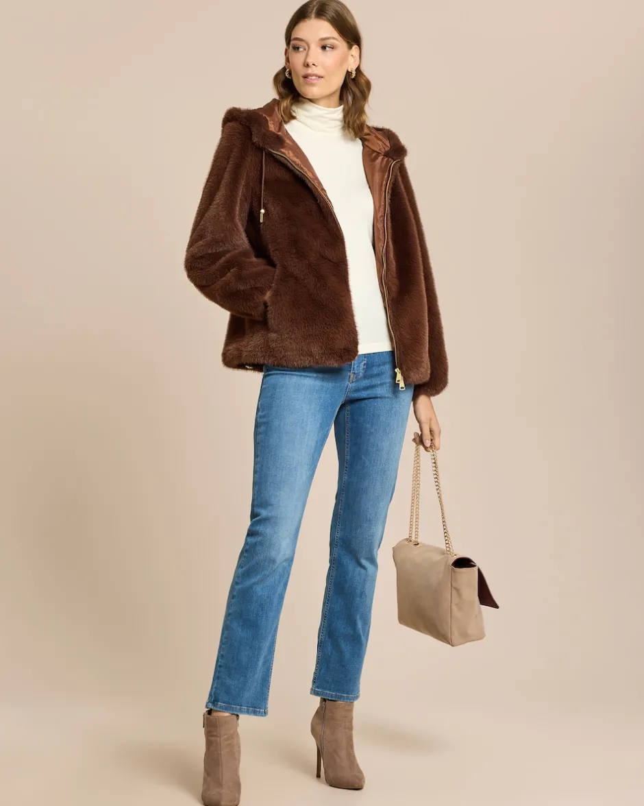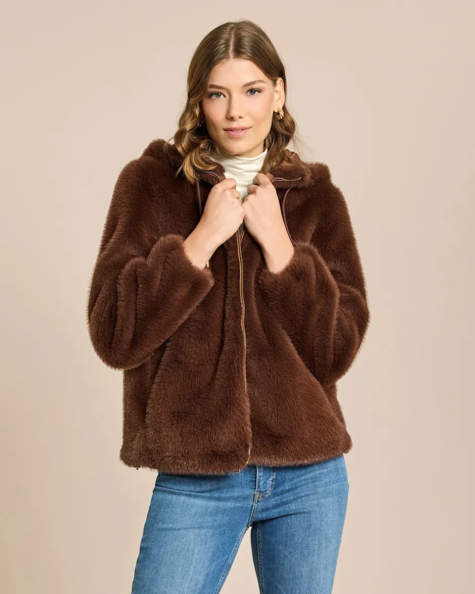 Luxuriöse Webpelzjacke mit Kapuze