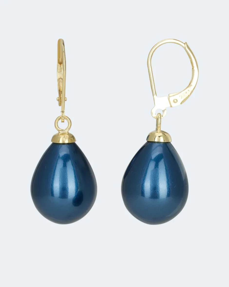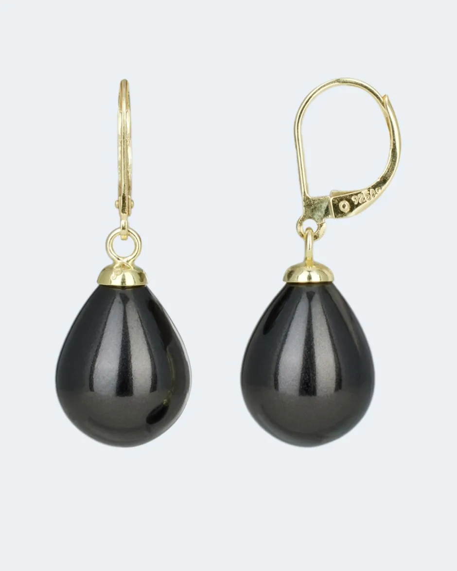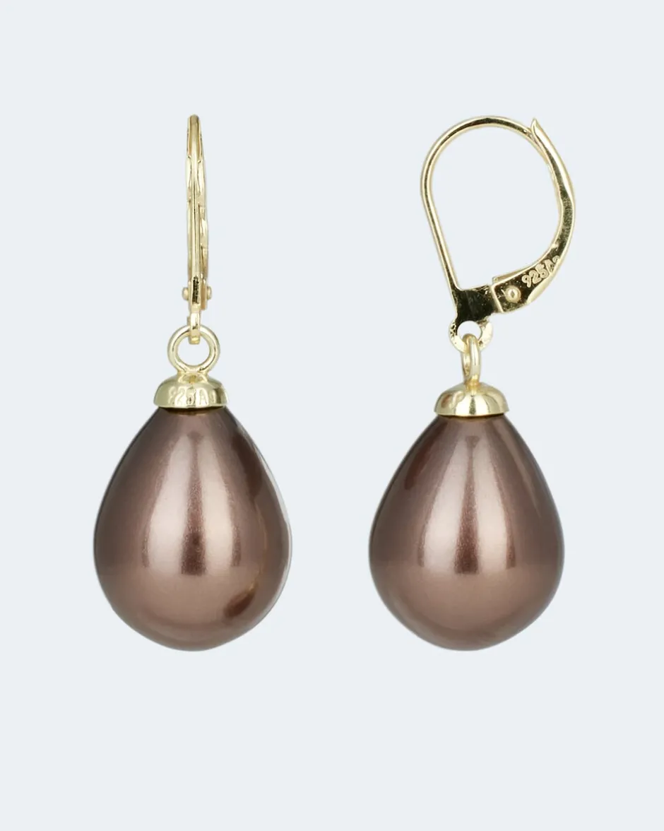Die Ohrhänger bestehen aus einer Klappbrisur aus Silber in Gelbgoldoptik an der beweglich eine einfarbige Muschelkernperle befestigt ist. Die tropfenförmige Muschelkernperle ist in verschiedenen Farben wählbar und begeistert mit einem herrlich schimmerndem Lüster. Perlenschmuck ist von klassischer Schönheit und steht jeder Frau. Eine stilvolle Ergänzung zu jedem Look.