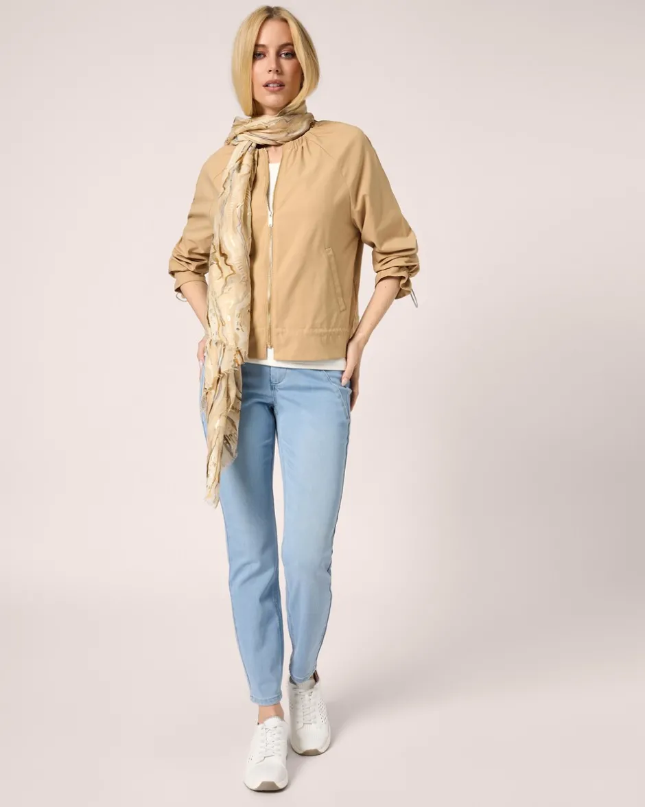 Unsere sportive Kurz-Jacke im jugendlichen Blouson-Stil ist das Must-have für Ihren Casual Look. Mit einem praktischen Reißverschluss und einem gesmokten Rundhals vereint sie Stil und Funktionalität. Der Langarm mit Kordelzug am Saum und offene Seitentaschen sorgen für einen lässigen Touch. Ein weiteres Highlight ist der untere Saum, der innen mit einem Kordelzug individuell angepasst werden kann. So verbindet die Jacke jugendliche Frische mit moderner Ästhetik und bietet höchsten Tragekomfort. Ein angesagter Begleiter für alles, was der Tag bringt.