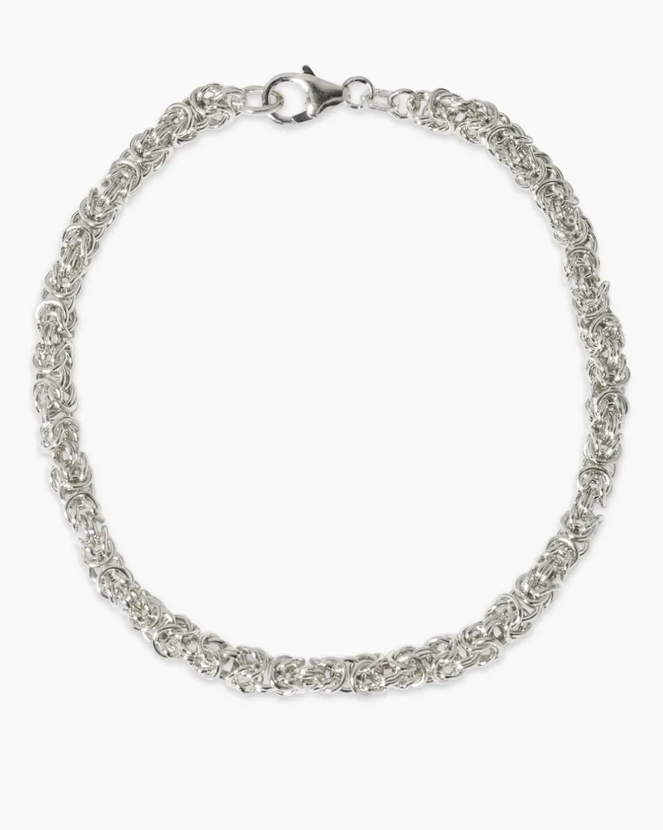 Das Armband ist aus hochglanzpoliertem Silber 925 gearbeitet und steht Ihnen rhodiniert in kühl-eleganter Weißgoldoptik und gelbgoldplattiert mit warmem Goldschimmer zur Verfügung. Das Armband ist im Königsketten-Design gestaltet und wirkt überaus elegant und stilvoll. Bei Königsketten sind die einzelnen Ringe raffiniert ineinander verwoben, sodass eine kompakte Kette mit einer stattlichen Breite entsteht. Trotz seiner Kompaktheit legt sich das Armband leicht und flexibel um Ihr Handgelenk und wird mit einem sicheren Karabiner fixiert.